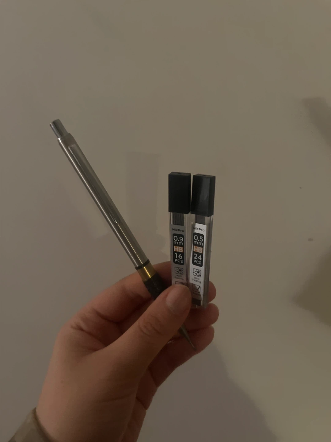 Selling a NicPro mechanical pencil, it's in great shape! It comes with two lead refills, one 0.9mm and one 0.5mm