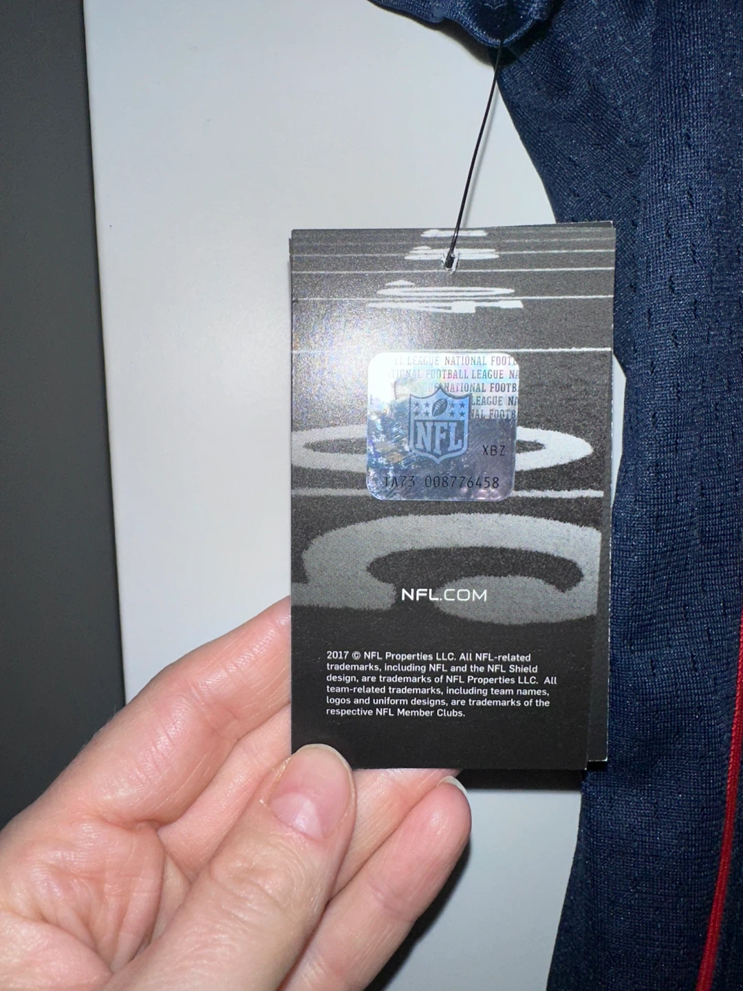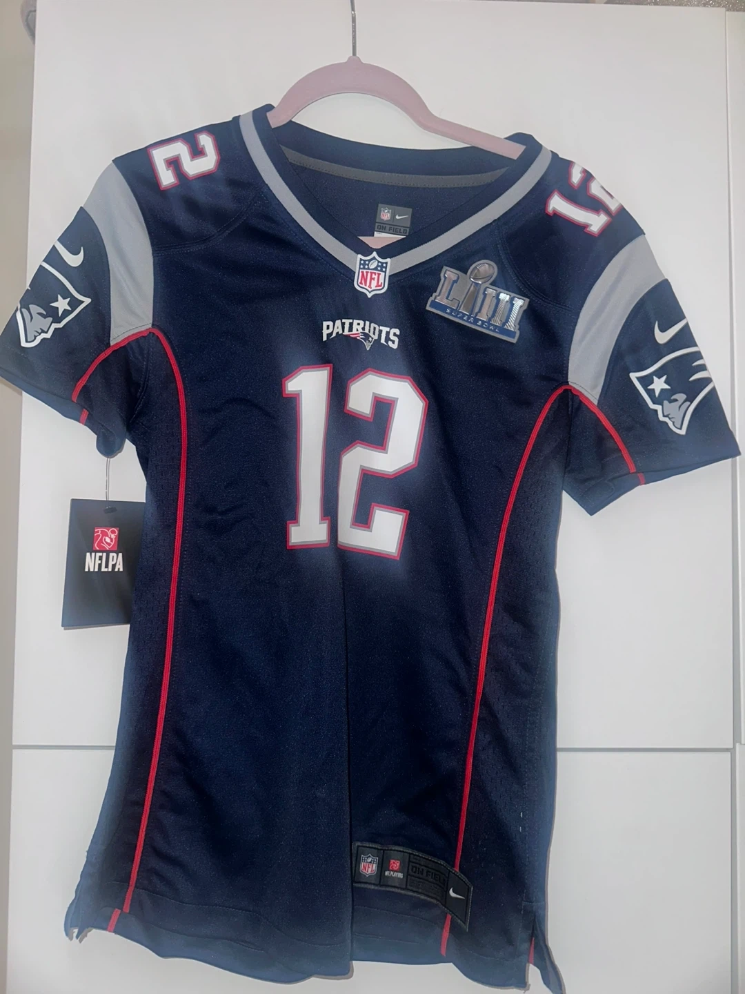 Selling a brand new New England Patriots Tom Brady #12 Nike NFL jersey in size small! It's a great find for any Patriots fan. The jersey is navy blue with red and grey accents. It had the Super Bowl LI patch on the shoulder. It's in perfect condition with tags still attached!