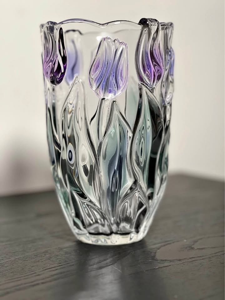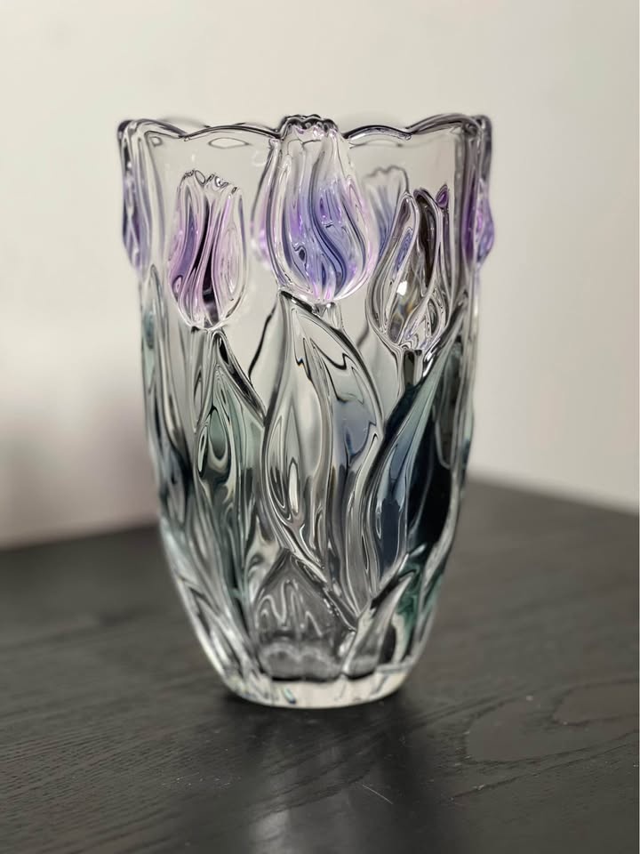 Design: Embossed (raised) tulips in clear glass with hints of purple and green coloring