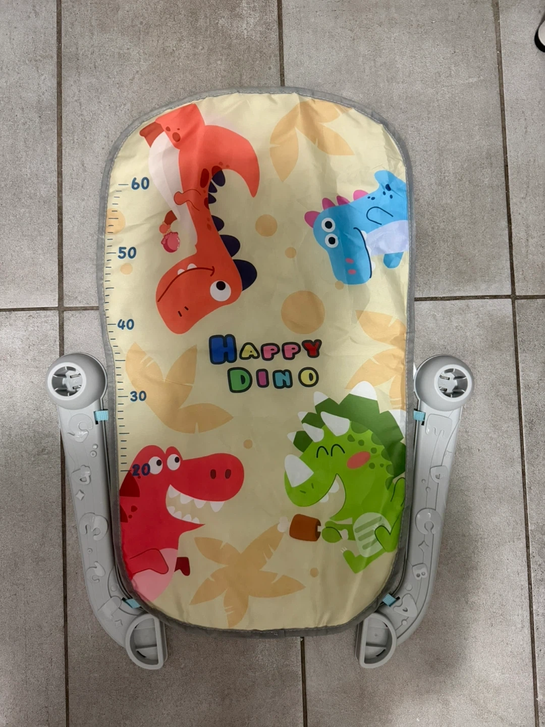 Gently used baby activity gym play mat with a cute dinosaur theme! It includes the overhead arch with hanging toys and the mat with height measurements. Perfect for tummy time and early development.