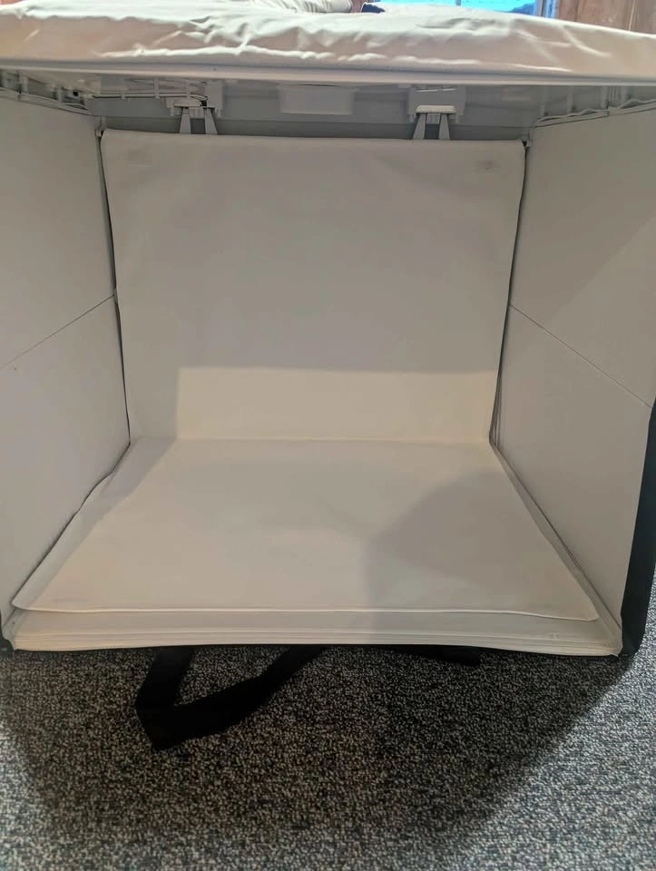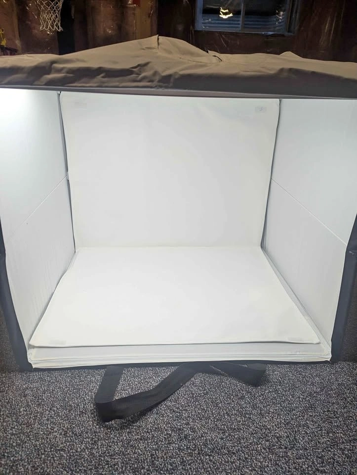 25x30x25" light box with options to take images through top or side. Clean white backdrop. Great for product shots. Light is working. Folds up nice and compact. Pickup in Summerside