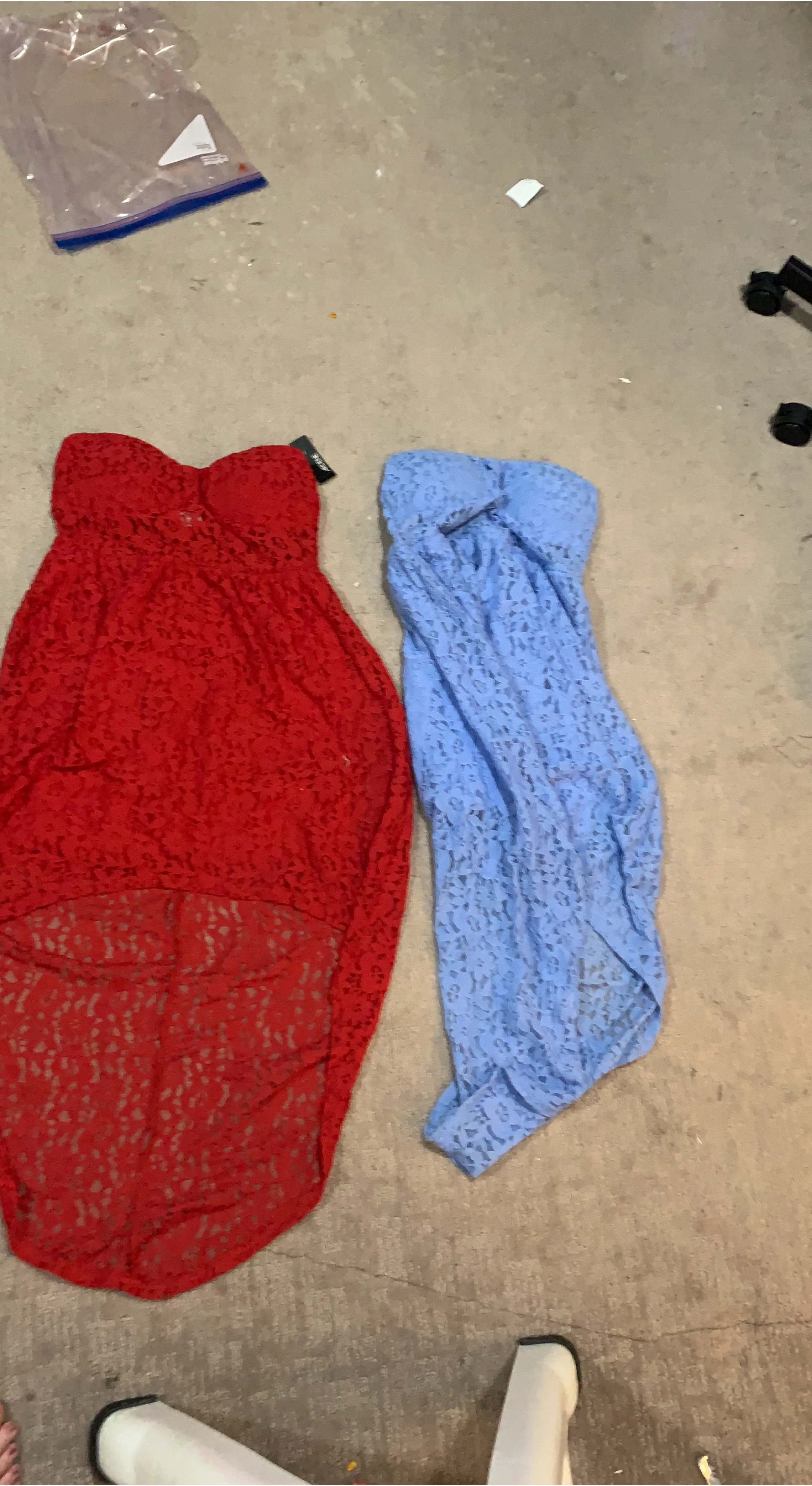 Two cute lace dresses, one in red and one in a light blue colour! They're both in great condition and ready for a new wardrobe