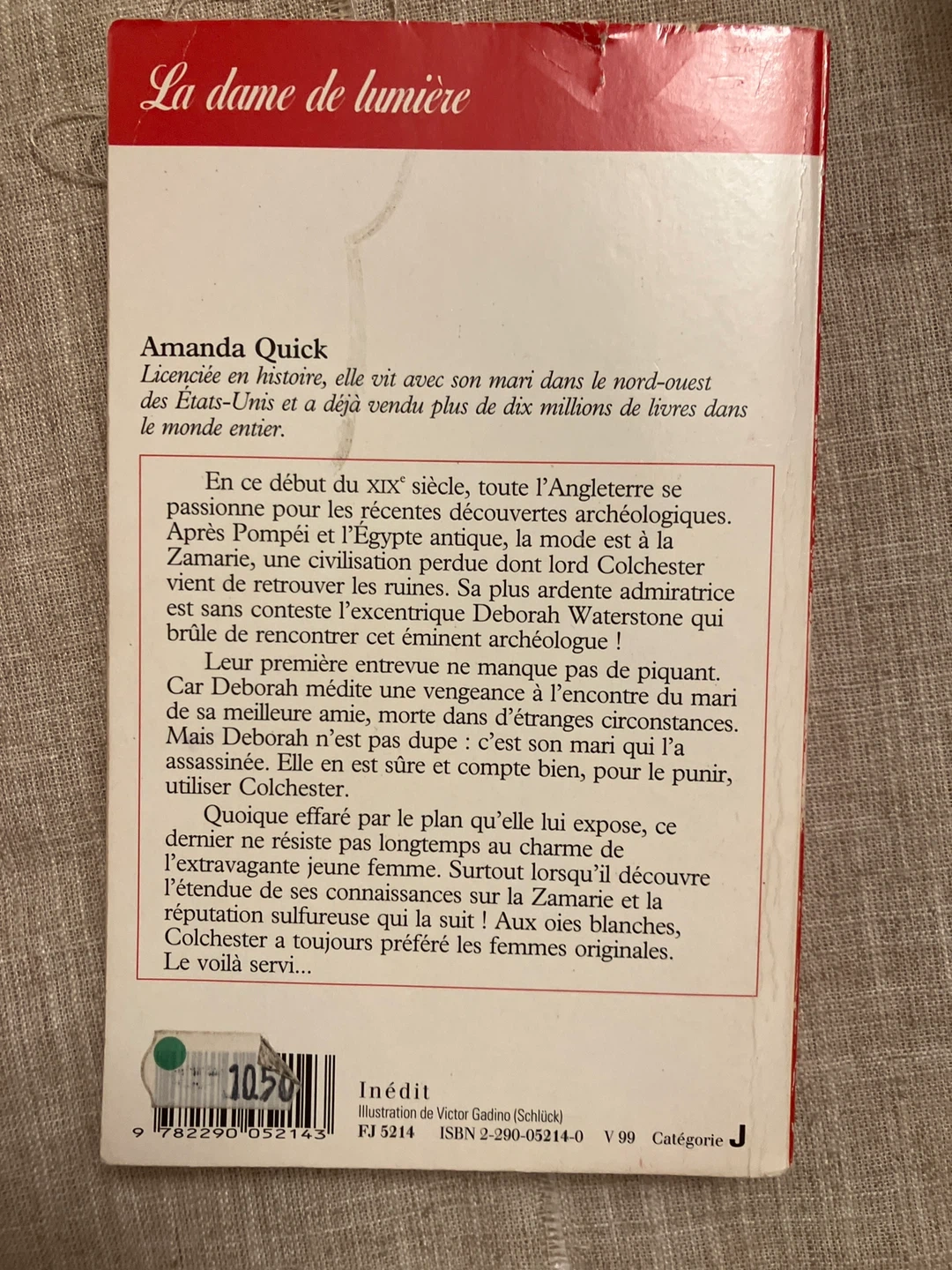 Selling the book "La dame de lumière" by Amanda Quick! It's a romance novel from the series "Aventures et Passions". A great read for anyone who enjoys historical romance novels