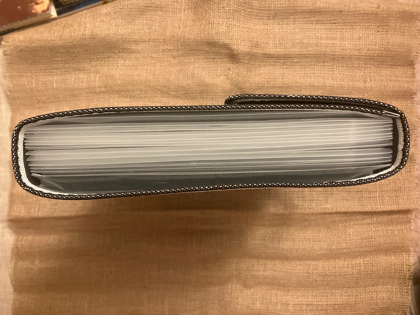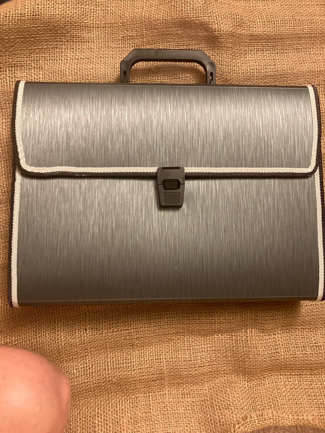 Expanding file folder with rotating handle and clasp. Great for organizing documents or school projects!