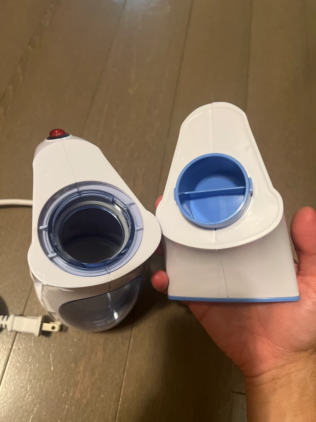 Simply twist off/on the top, add water up to the max fill line and switch the button on.