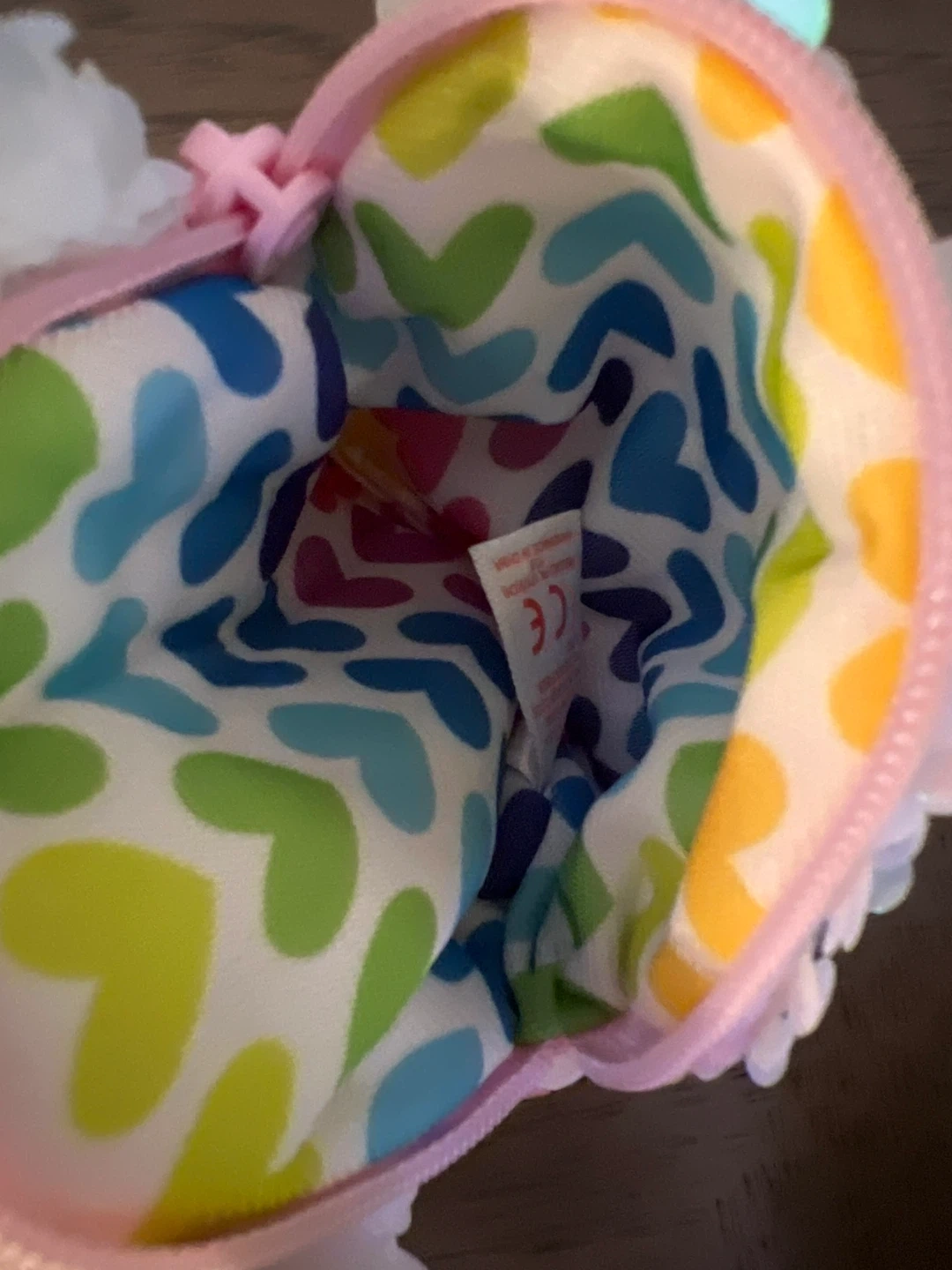 Super cute Ty Beanie Boo unicorn purse up for grabs! It's in great condition and features a sparkly white sequin design with a colourful heart-patterned lining. Perfect for storing little treasures!