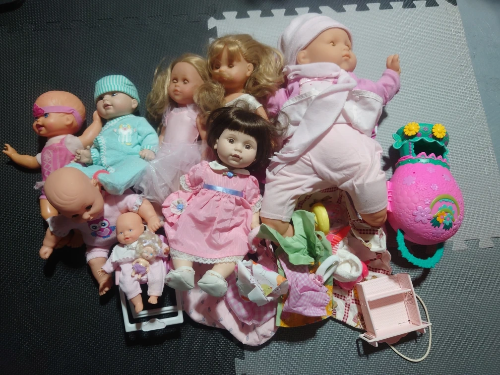 A collection of various dolls and some doll accessories, ready for a new home! Perfect for imaginative play or adding to a collection