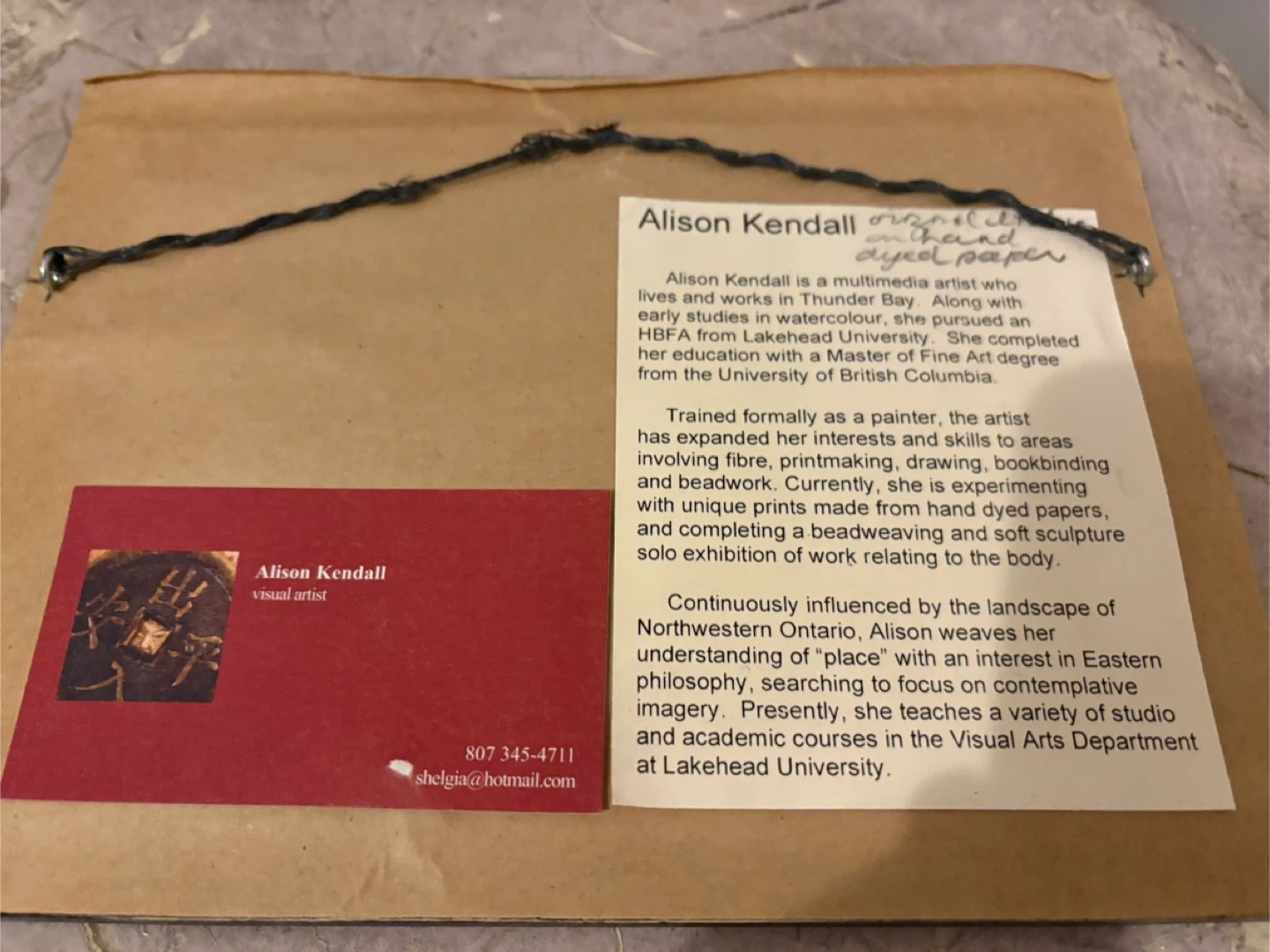 Set of 2 Northern Ontario Artist Alison Kendall original etchings on hand dyed paper
