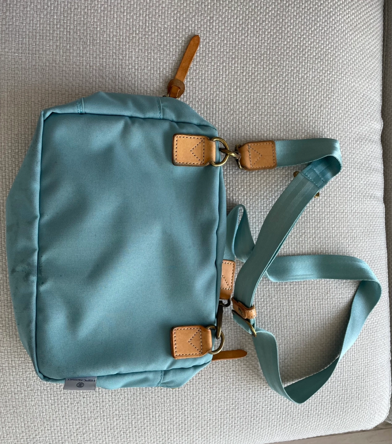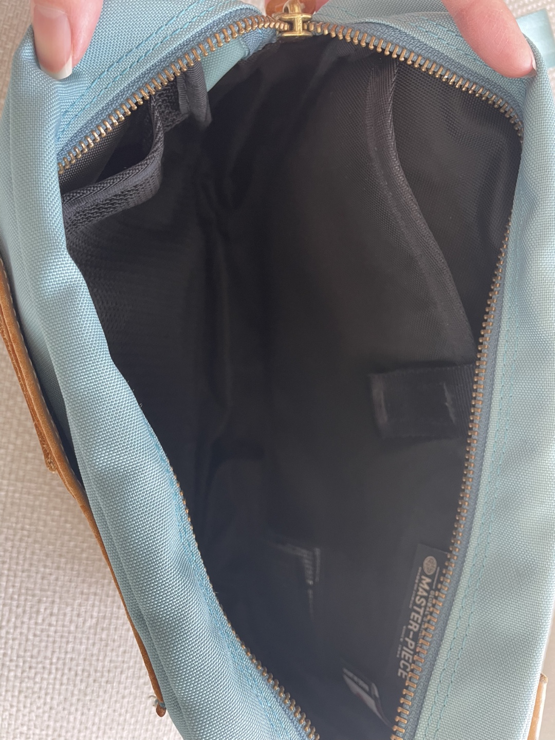 This is a sky blue Master-Piece bag that I bought in Japan some years ago. It’s been used gently. I can’t find the exact bag on their site anymore but included a picture of a similar one for price reference. It's a stylish and functional bag perfect for everyday use. Strap can be adjusted and is long enough for crossbody wear.