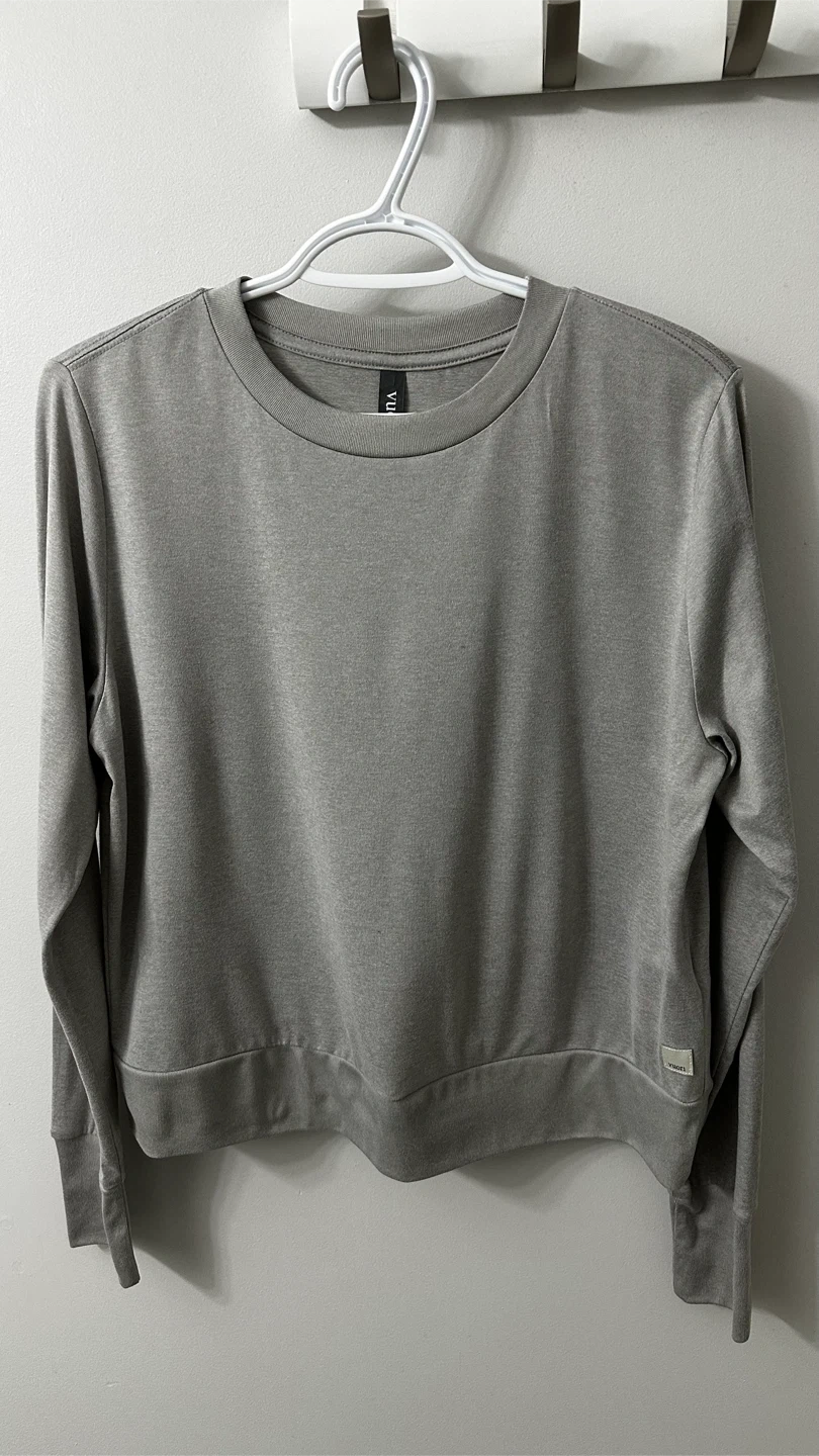 Selling a Vuori Daydream Crew in light heather grey, size medium. It's made of 96% polyester and 4% elastane. Super comfy and in great condition! NWOT