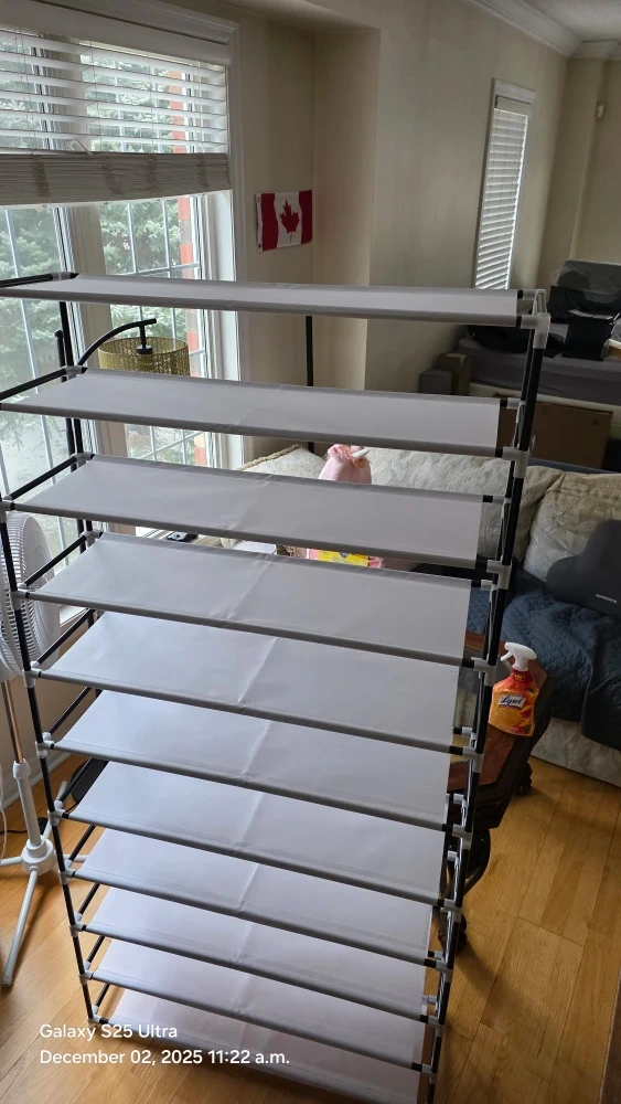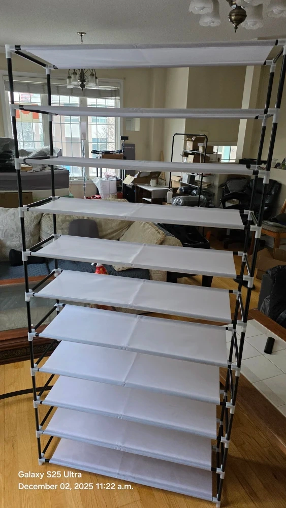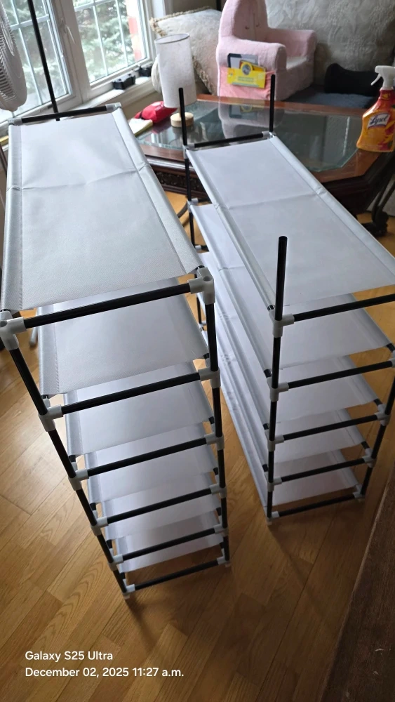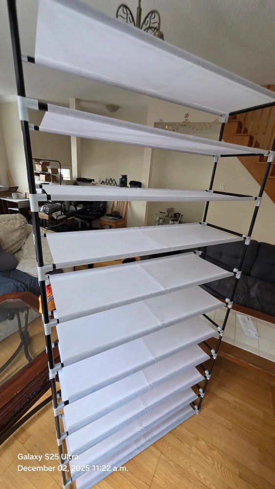 Here's a shoe rack organizer that's in great condition! It's perfect for keeping your shoes tidy and out of the way. It has multiple tiers, so you can store lots of pairs. Perfect for any home!