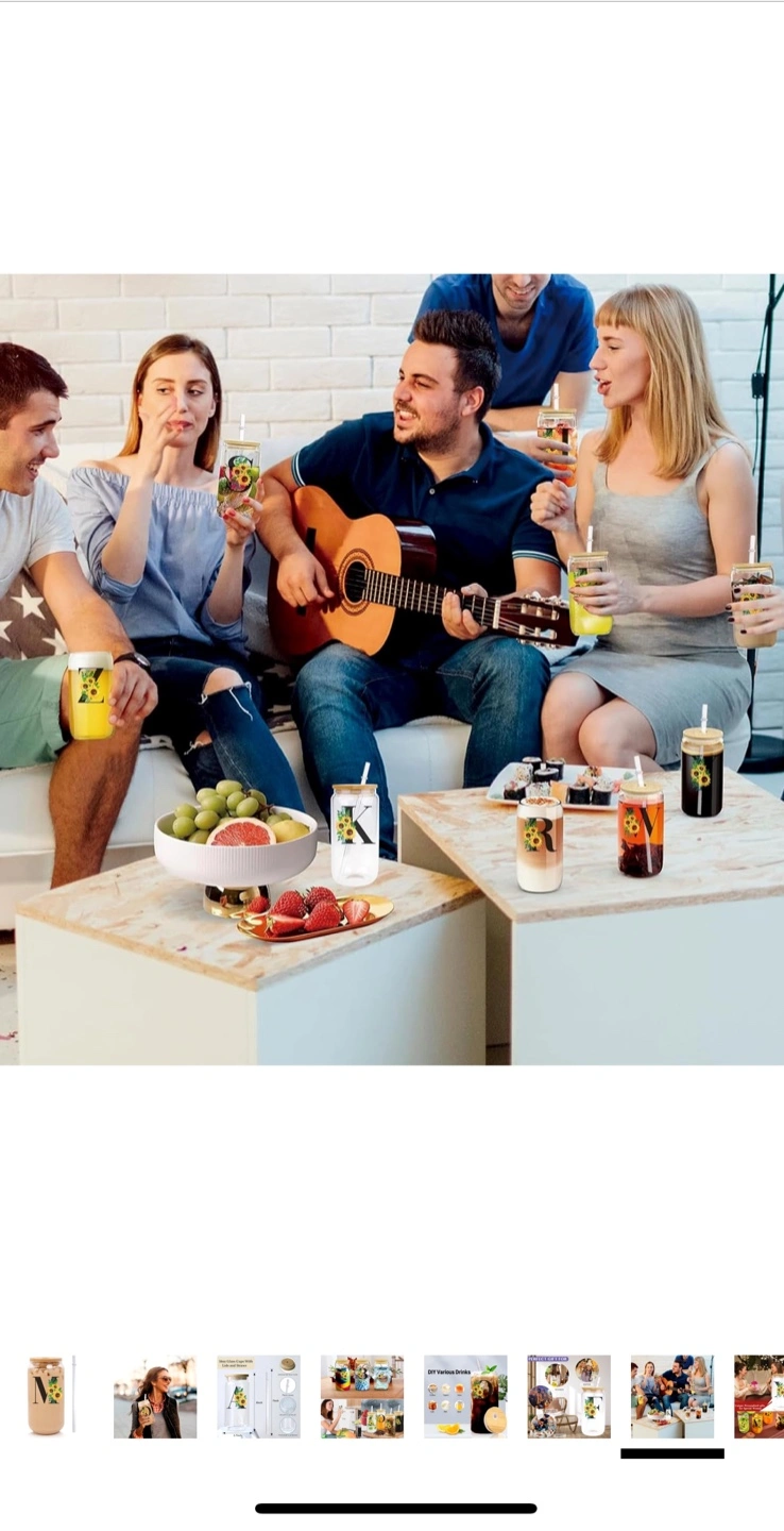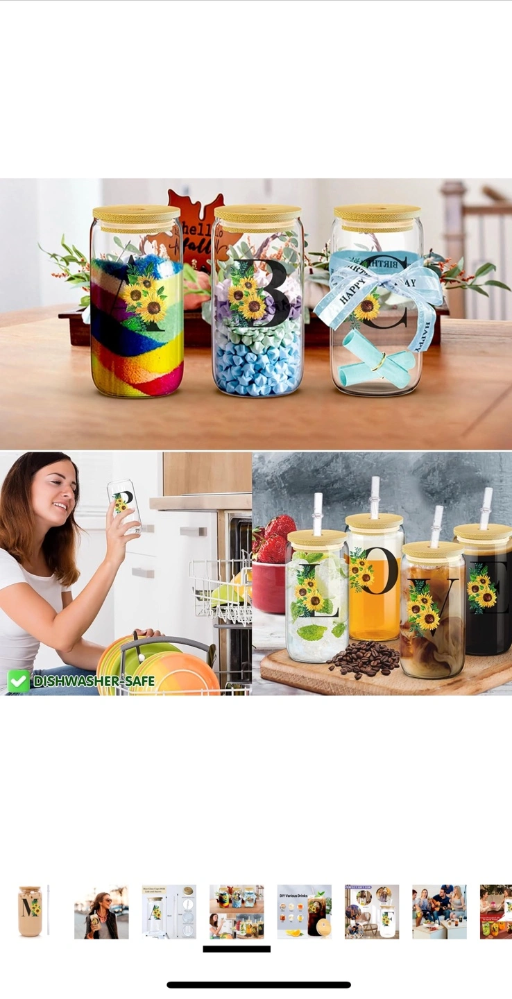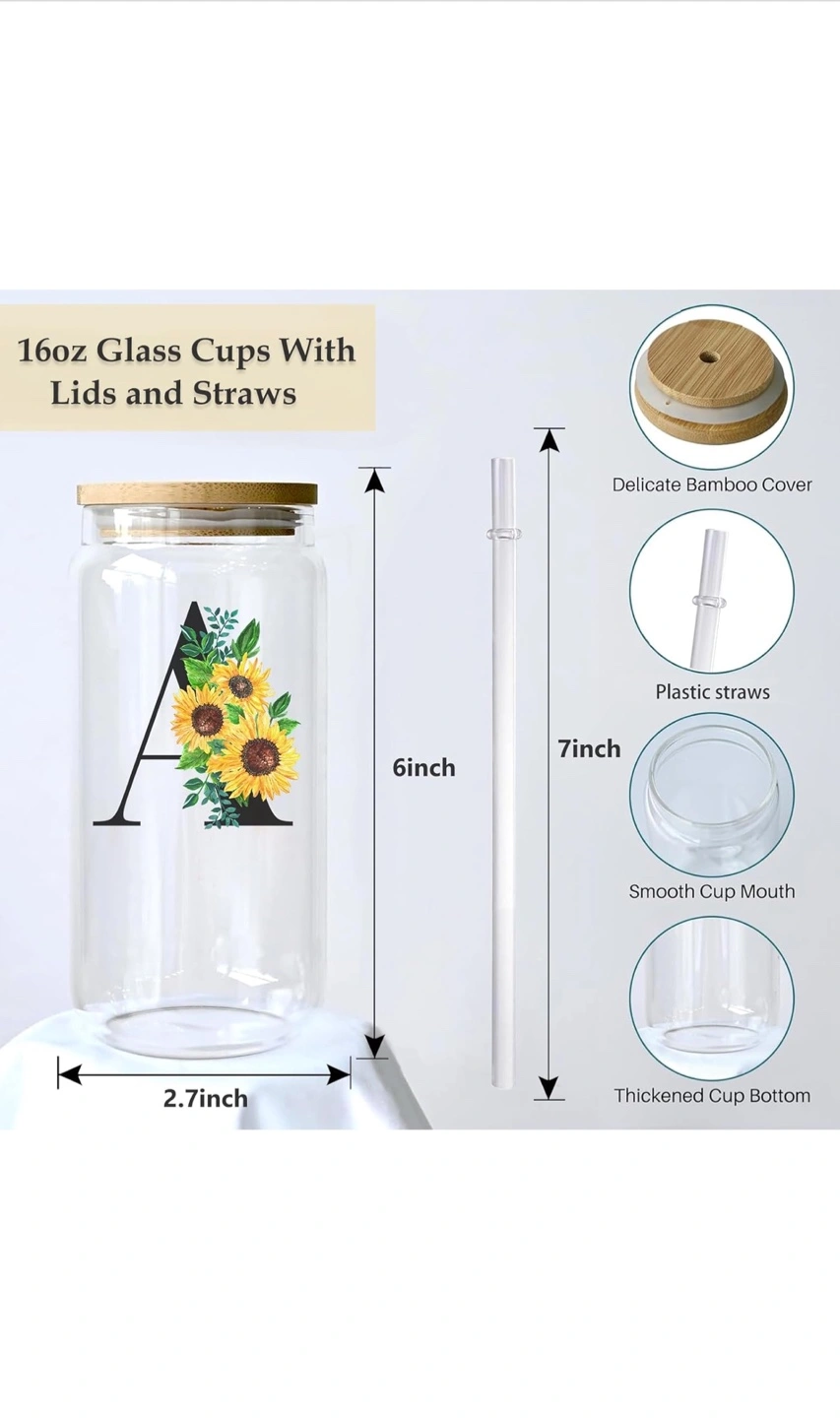 Selling a 16oz initial glass cup with a delicate bamboo cover, plastic straw and a smooth cup mouth. It's 6 inches tall and 2.7 inches wide. Perfect for iced coffee, water, or any beverage you like PS:This is the final sale. (No exchanges or returns)100% brand new product. Excellent price. No bargaining accepted. First come, first served.