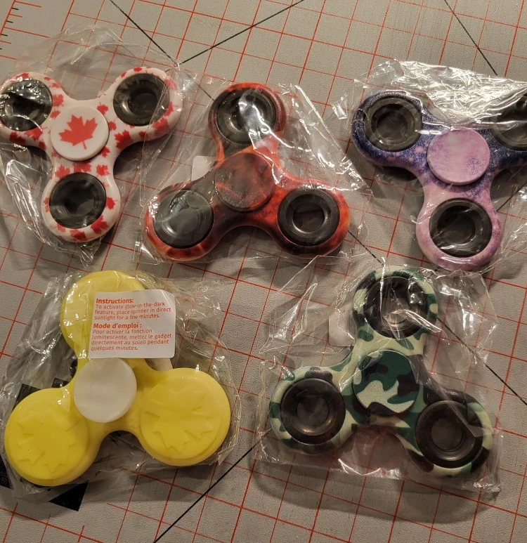 I'm selling fidget spinners in various colours and designs! They are all brand new in their original packaging.