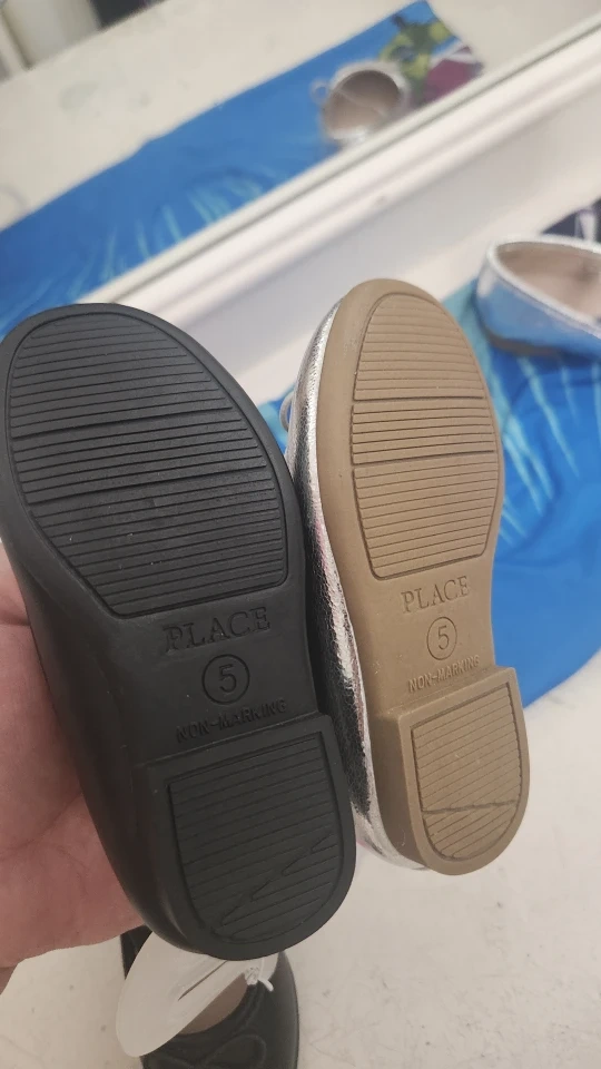 Selling a pair of Children's Place ballet flats in size 5. One pair is black and the other is silver. They are brand new never worn. $18 each or both for $25
