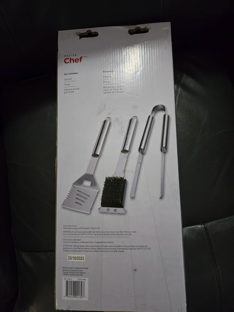 Buy & SellMaster Chef 3-Piece BBQ Tool Set - NewMaster Chef 3-Piece BBQ Tool Set - New$20Selling a brand new Master Chef 3-piece barbecue tool set! It includes a spatula, tongs, and a basting brush. Perfect for your next BBQ!ConditionNewWHERE TO MEETCheck LocationView MapSELLERverifiedAngelaDelwood1033 reviews1 chats·0 favorites·6 views