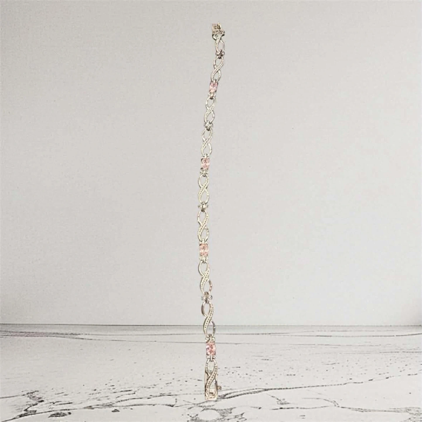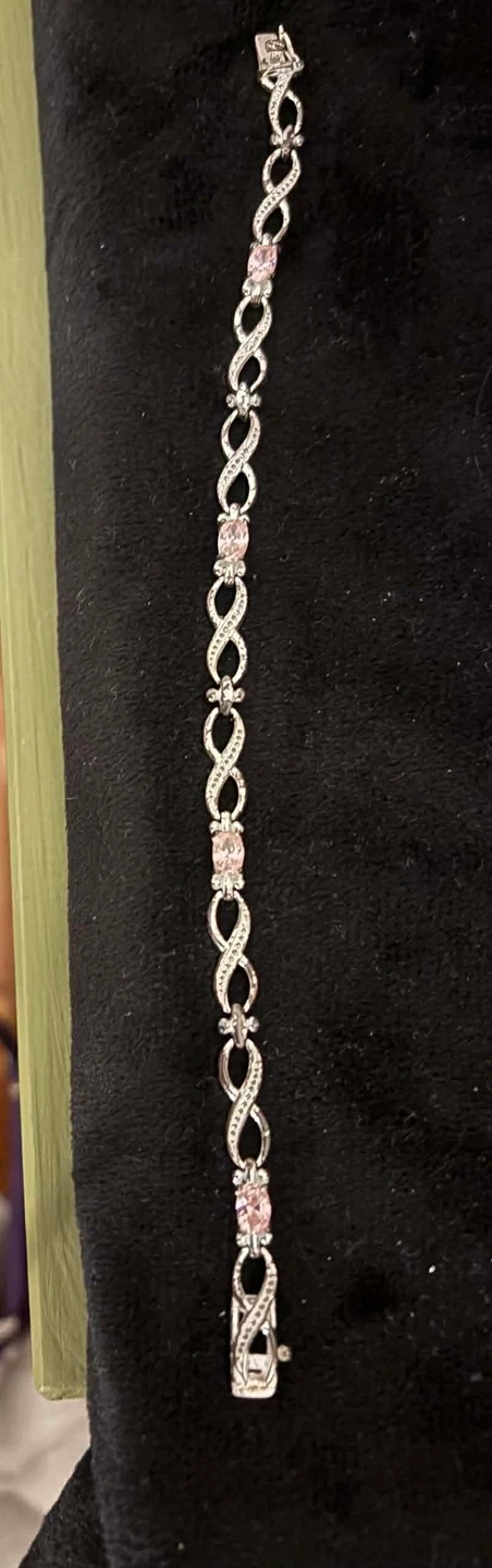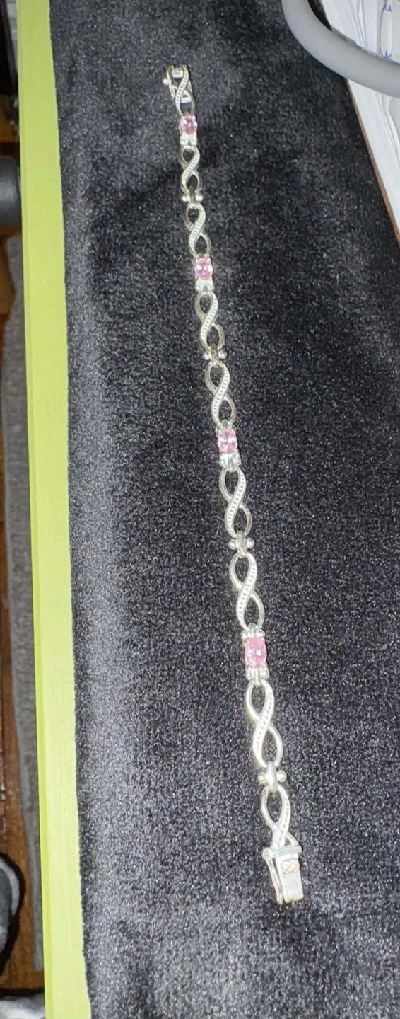 This is a beautiful sterling silver bracelet with pink quartz accents. It's like new and ready to wear! The bracelet was originally listed for $42.00.