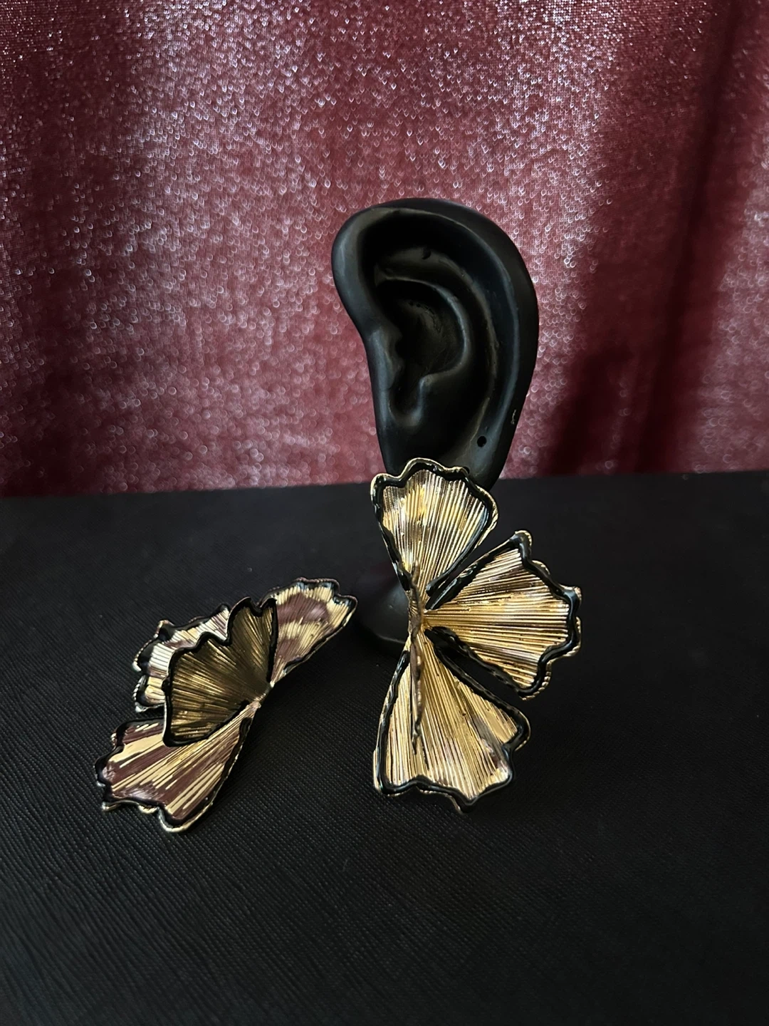 These Frilly Jewels flower earrings are a beautiful statement piece! They feature a unique, eye-catching design in a gold tone that would add a touch of elegance to any outfit
