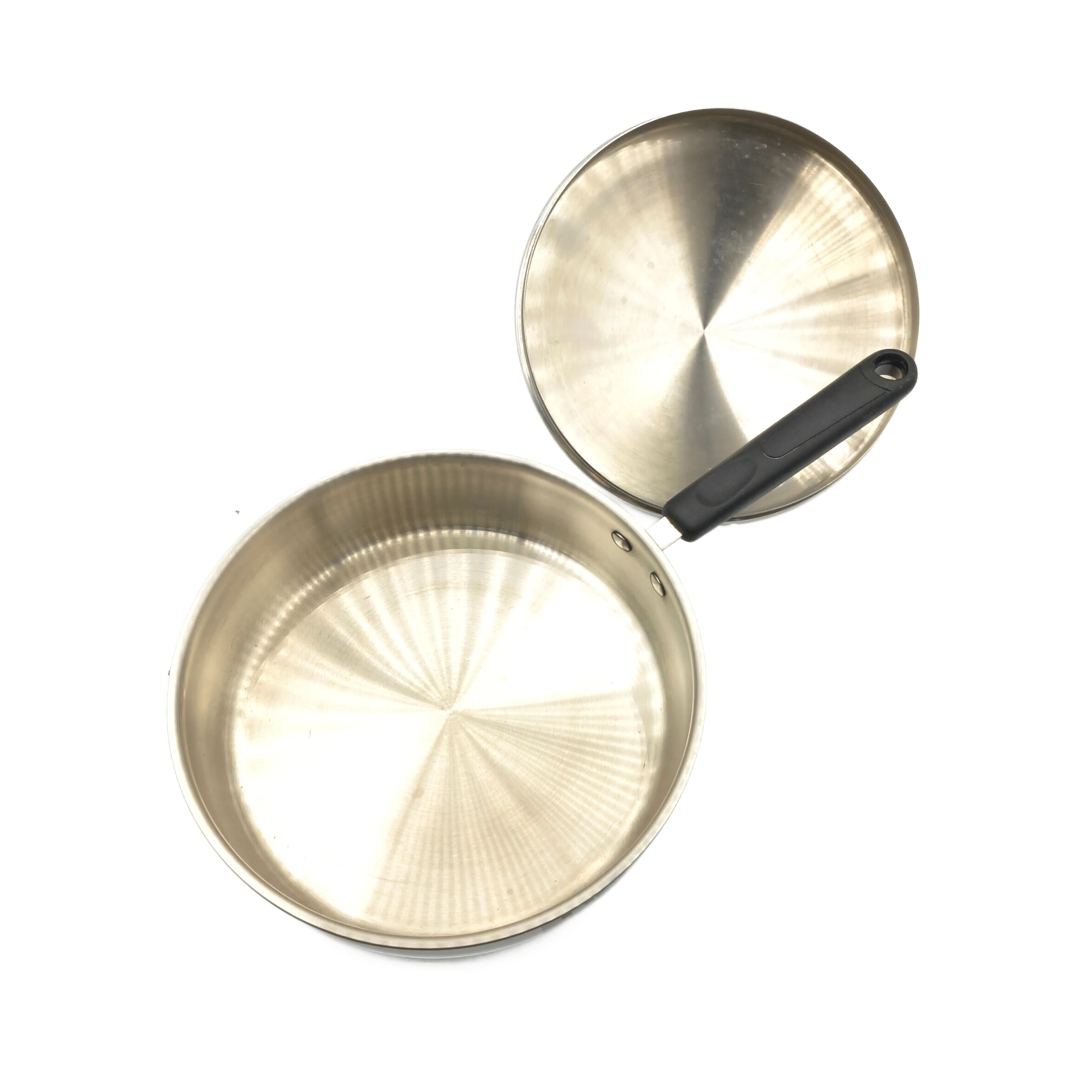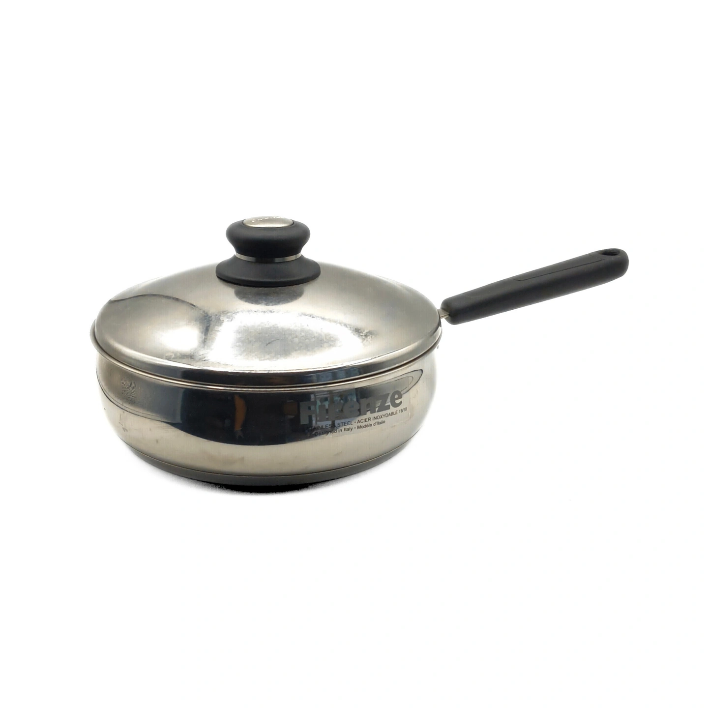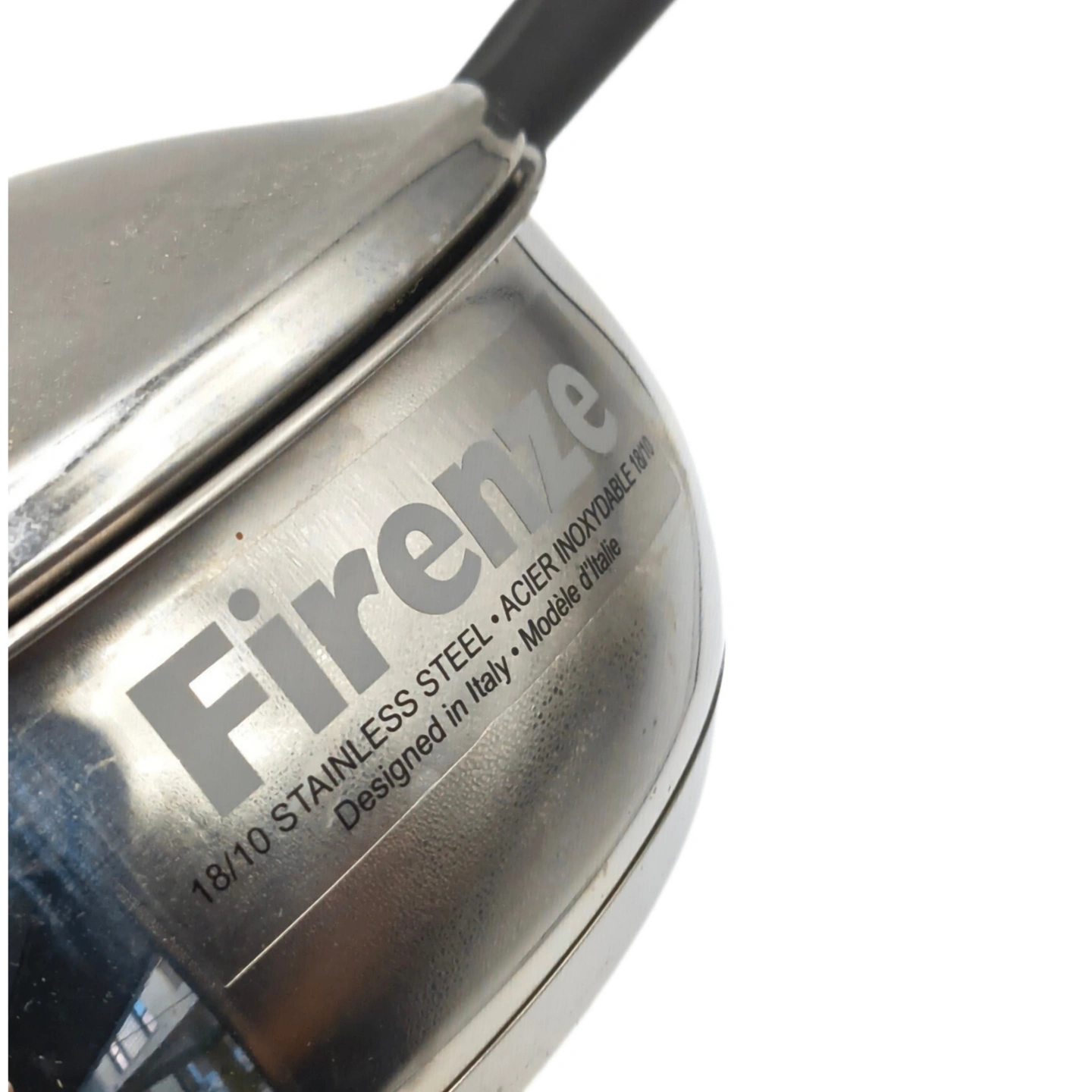 Selling a Firenze saucepan made of 18/10 stainless steel. It comes with a lid and features a black handle. Designed in Italy!