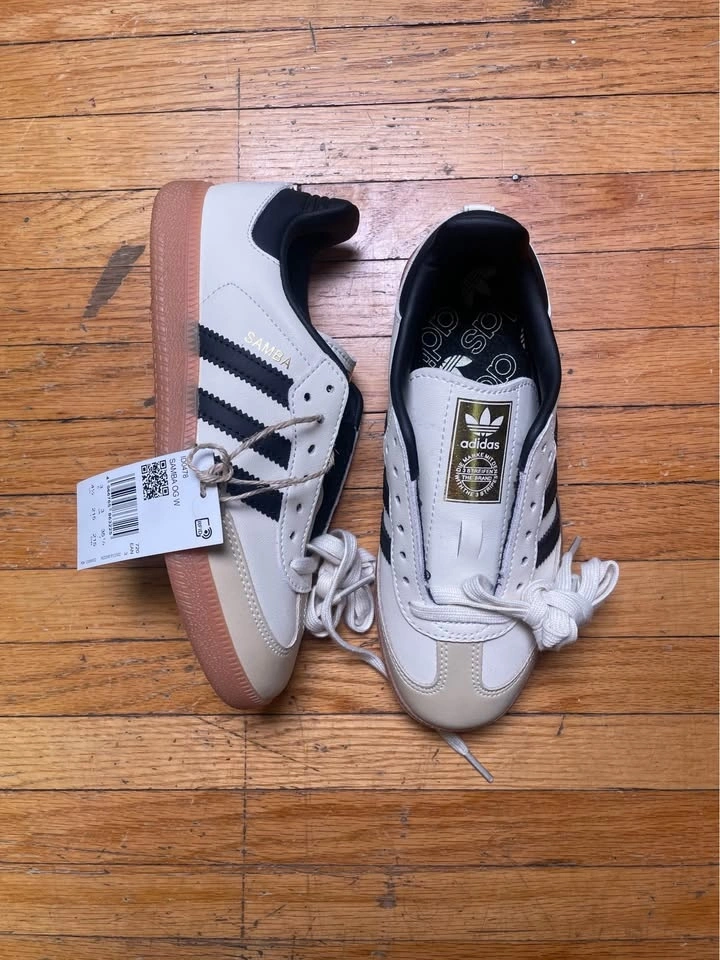 Brand new Adidas Samba OGs in the classic white, black and gum sole colorway. Tags still on, never worn, spotless condition. Clean, stylish and super popular right now.