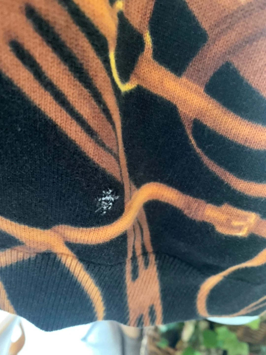 Selling a Ralph Lauren turtleneck in size large. It's black with a cool pattern on the front. The material is 62% cotton and 38% rayon. It's in great condition!