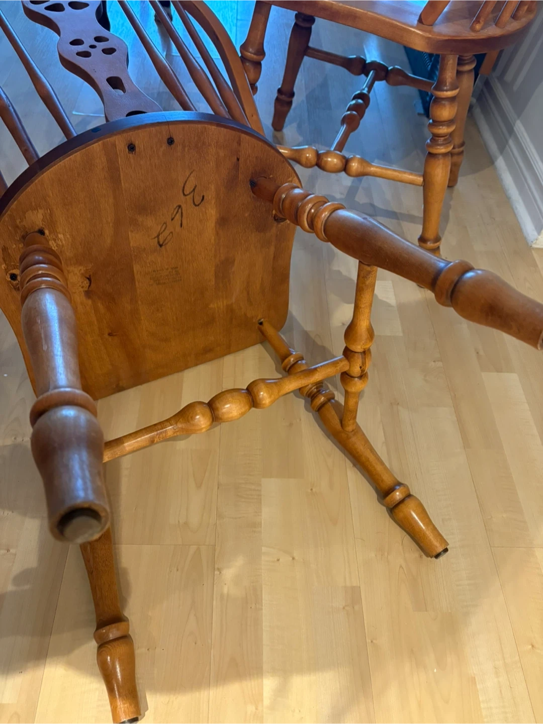 Selling a set of two wooden dining chairs. All wood - I think oak. Made in Canada.