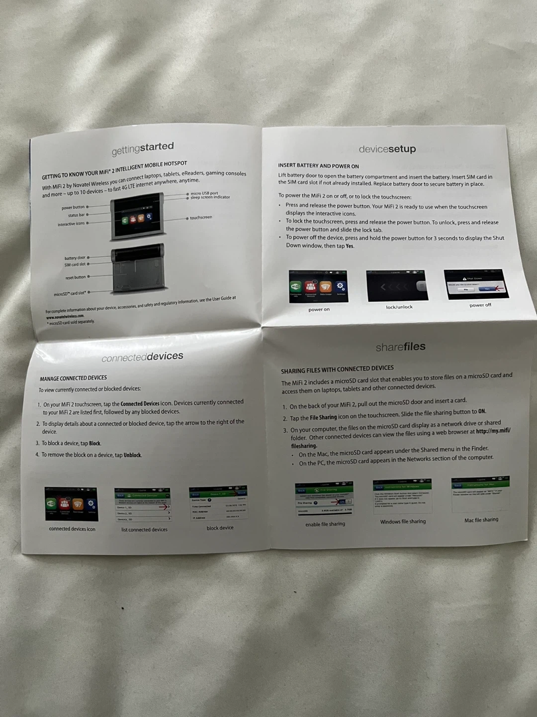 Selling a Novatel Wireless MiFi 2 mobile hotspot. It comes with its box and quick start guide. This hotspot allows you to connect devices to fast 4G LTE internet anywhere, anytime. Great for travellers!