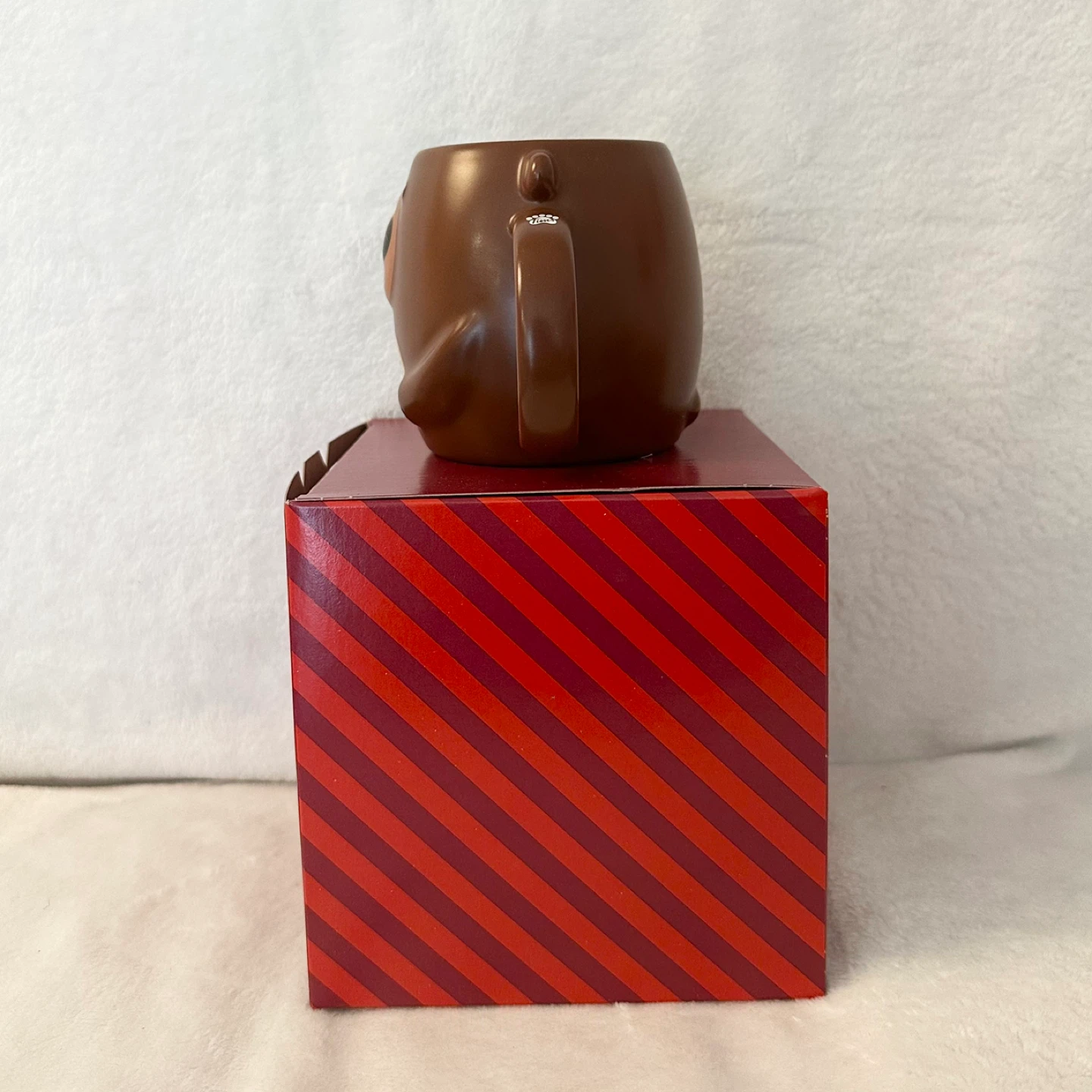 I'm selling a super cute Tim Hortons bear mug! It's brown and features a bear holding a donut. The mug comes with its original box. Perfect for any Tim Hortons collector or bear enthusiast
