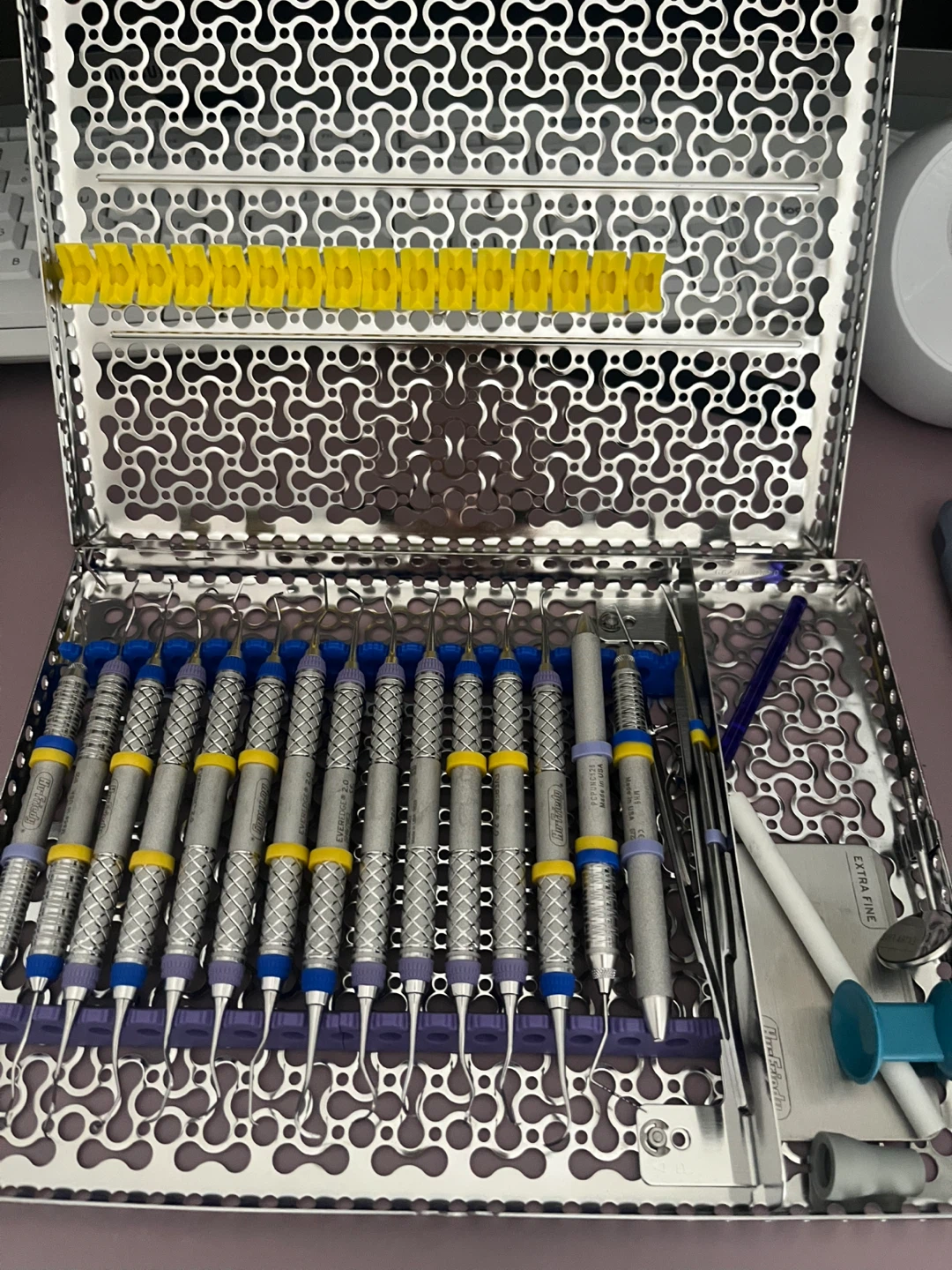Selling a Hu-Friedy dental instrument kits with basic cassette, rigid cassette, two large cassettes.. Also slowspeed handpiece included with original container. Includes mirrors and sharpening tools. Excellent condition and comes in a metal sterilization tray. Great for dental students or professionals! Includes two books. Selling altogether but if you want to buy separate please contact me for price. Only used at hygiene school.