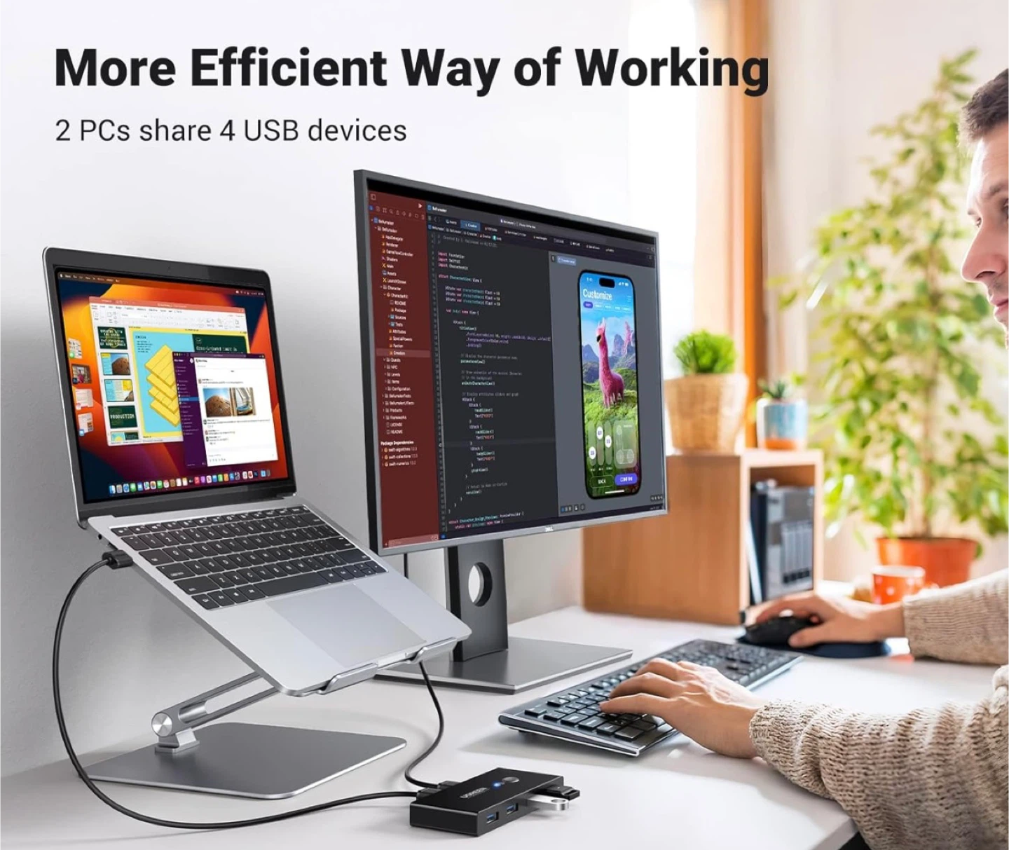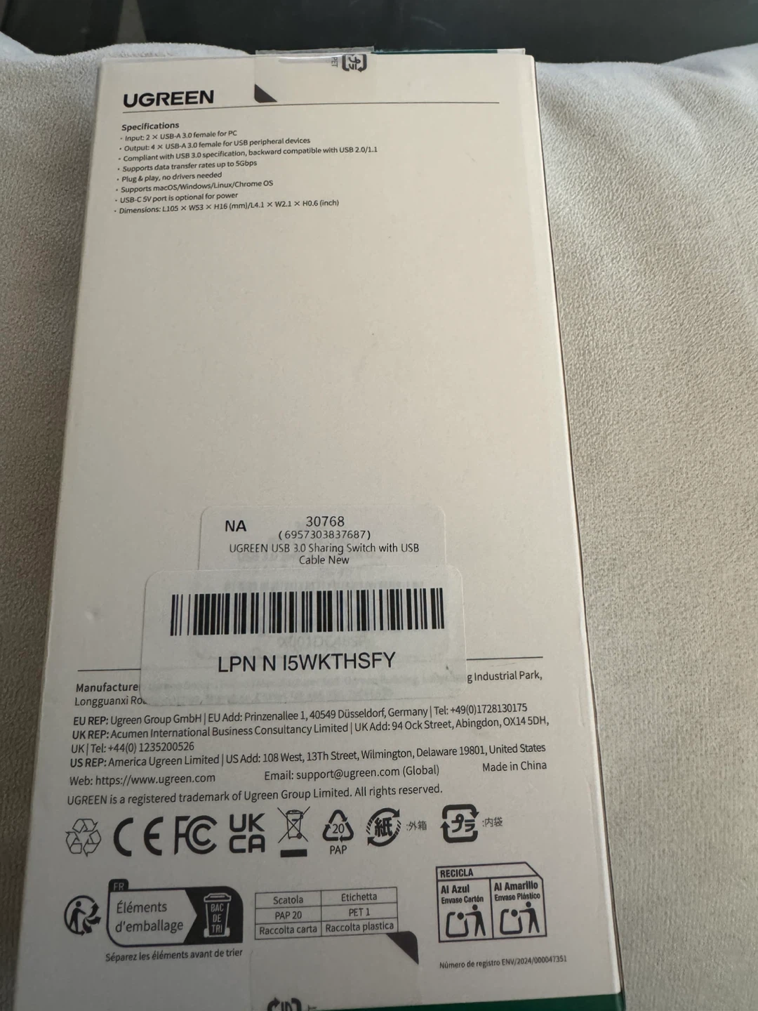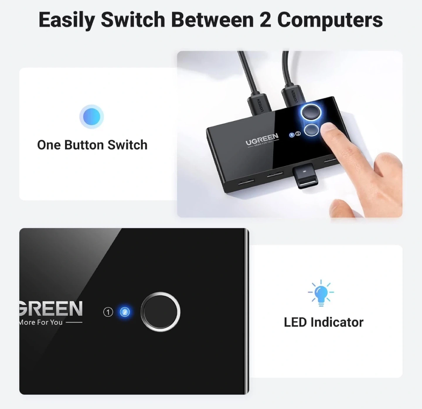 Selling a Ugreen USB 3.0 sharing switch, 2 in 4 out! It's perfect for sharing USB devices between two PCs. It's plug and play, so no drivers are needed. The box is included