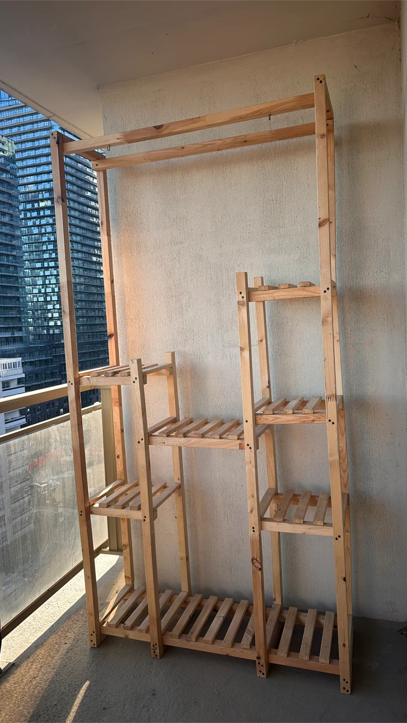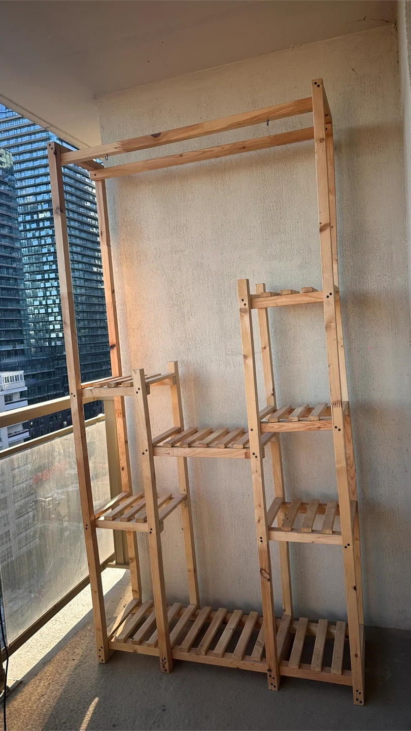 Selling a wooden rack that comes with built-in shelving! It's perfect for organizing your plants and showpieces. The rack is made of natural wood and is in great condition. It adds a rustic touch to any room!