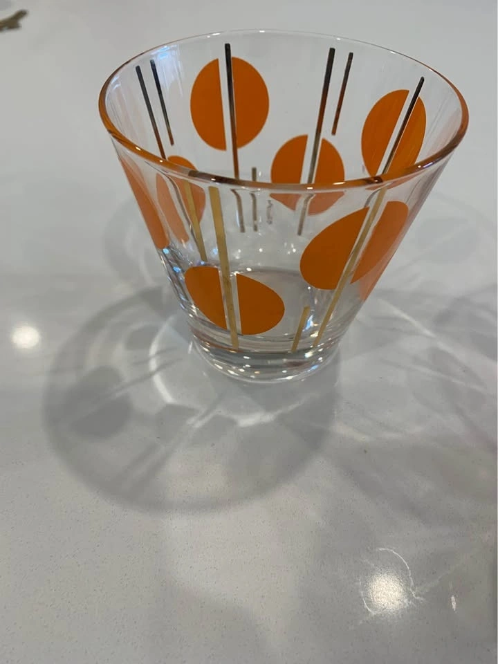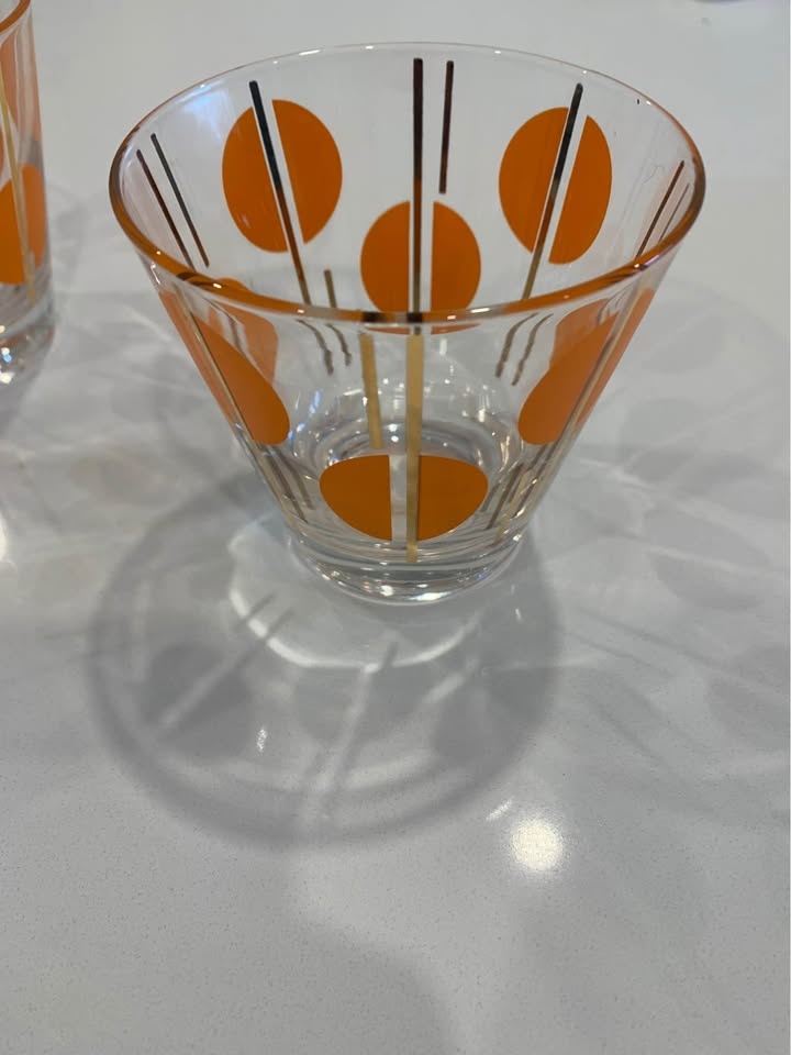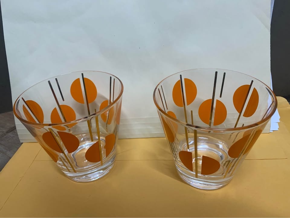 For the serious collector who knows what these are :) Fred Press Eclipse Orange lowball/juice glasses made in 1968