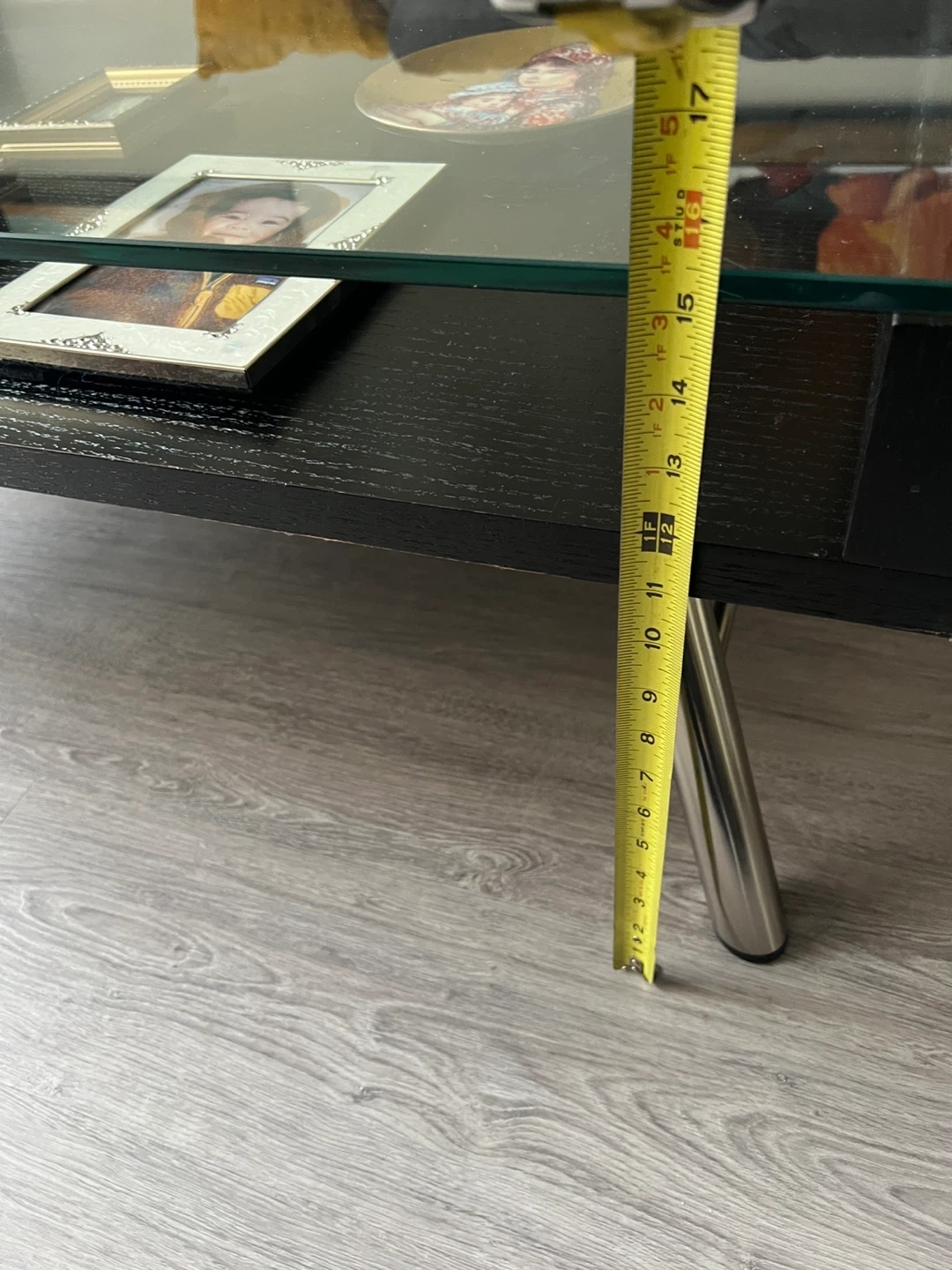 Looking for a stylish addition to your living room? This elegant black coffee table features a glass top with a handy display shelf underneath—perfect for showcasing books or decor. In great condition and ready for a new home!