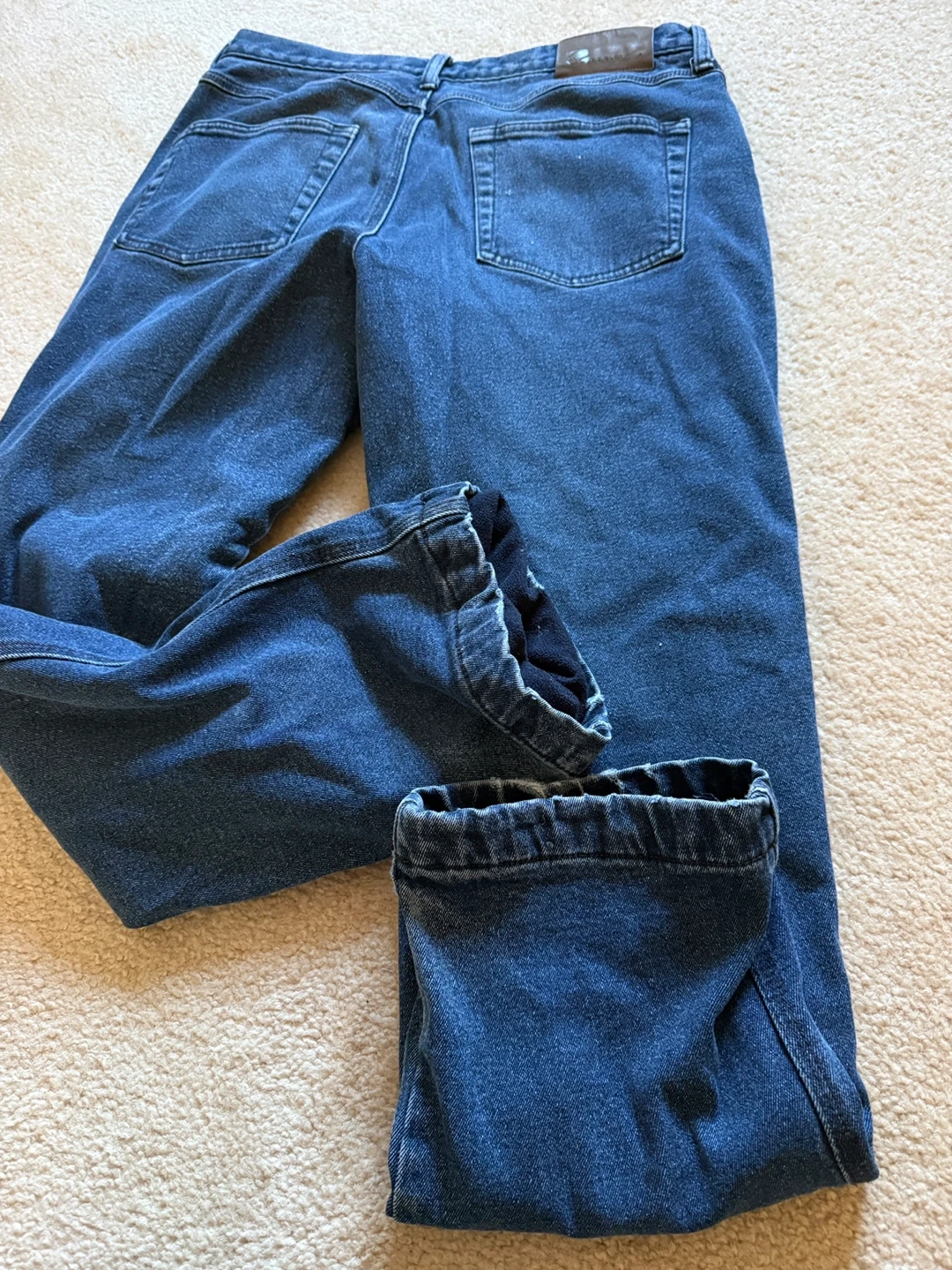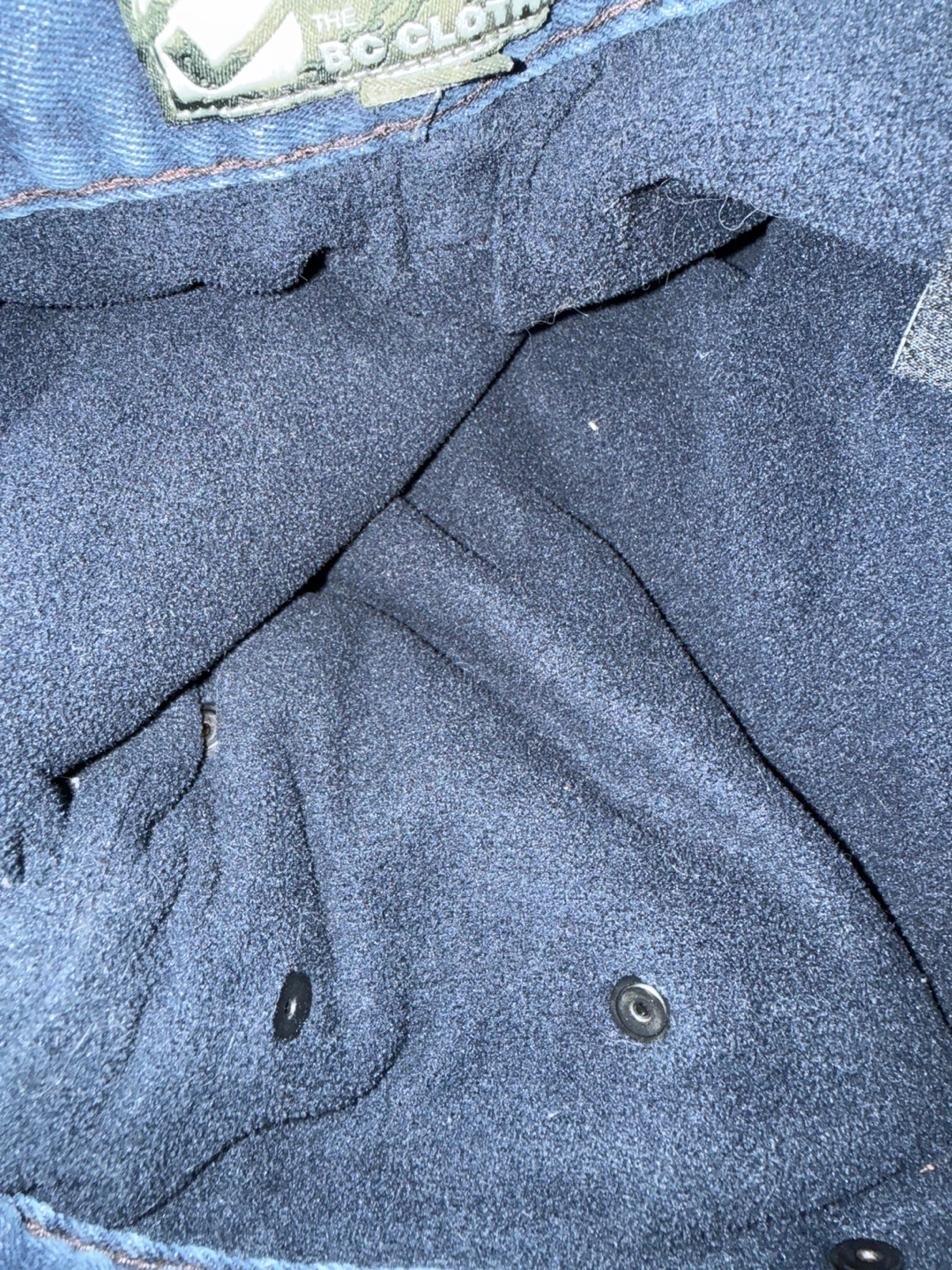 Selling a pair of The BC Clothing Co. jeans in size 32x30! The exterior is made of 99% cotton and 1% spandex, while the lining is 100% polyester. Due to the intense colour of this denim, it's suggested to wash it separately before wearing and to avoid contact with light coloured fabrics before washing, as the colour may transfer.