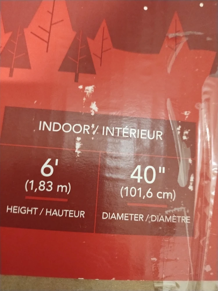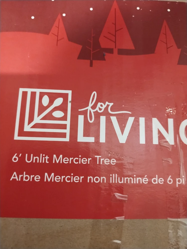 Selling a 6' Unlit Christmas Tree from For Living. It comes with the box and a set of lights to decorate it. The tree has 6 layers with 600 branch tips. It's 6' (1.83 m) in height and 40" (101.6 cm) in diameter.