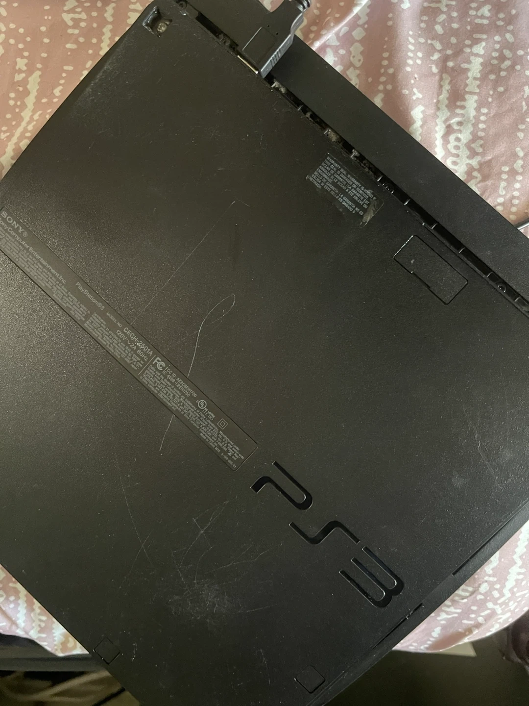 Selling a used Sony PlayStation 3 (PS3) console. Comes with a controller and power cable. There are some scratches on the console, but it is fully functional and ready for gaming! For it being there like 5 scratches total barely noticeable has gams downloaded on the system already disc drive works perfect