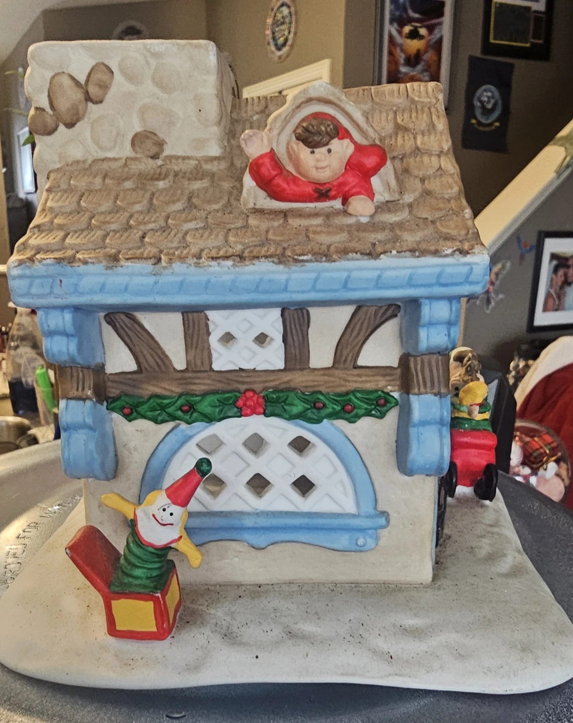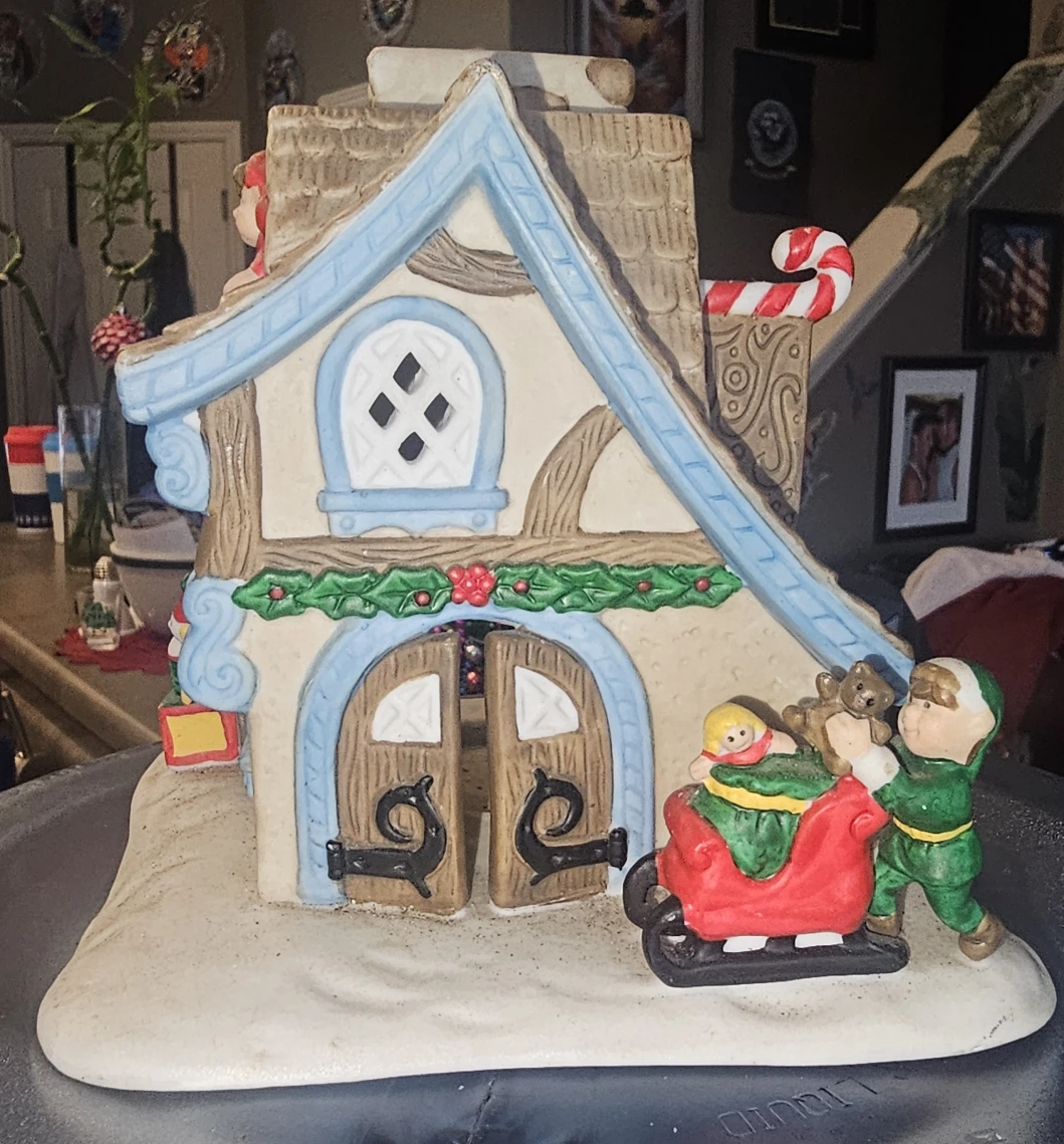This is a Partylite Christmas house figurine. It's a cute addition to any holiday display