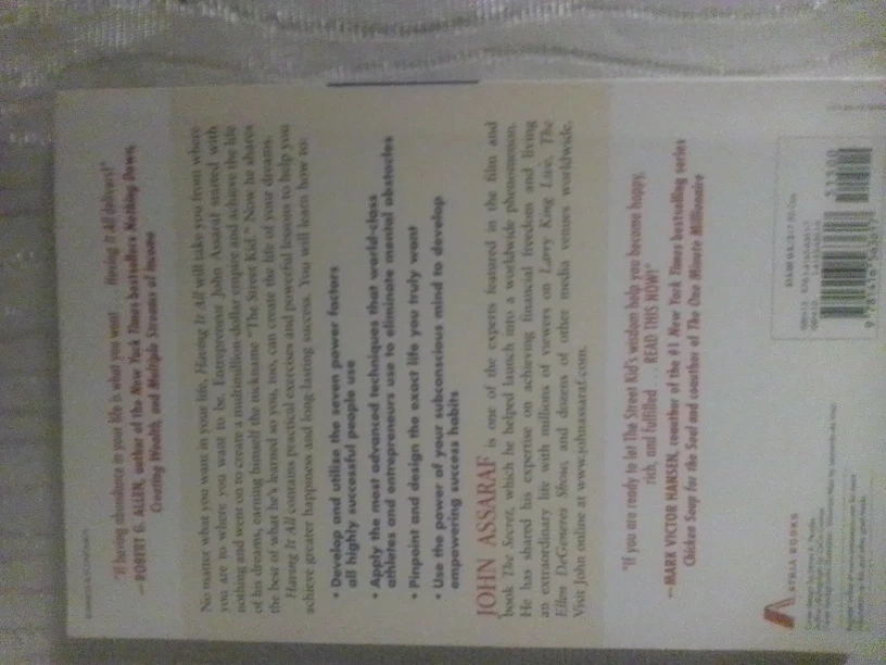 Selling the book "Having It All: Achieving Your Life's Goals and Dreams" by John Assaraf! It's a New York Times Bestseller that's revised and updated. Learn how to achieve greater happiness and long-lasting success with practical exercises and powerful lessons to help you achieve it all