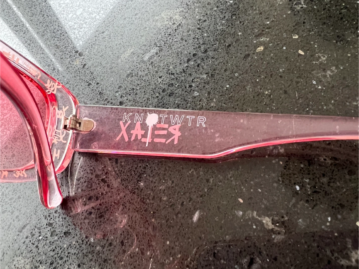 Selling a pair of KNTWTR XAIΞX sunglasses in pink! They have a unique design and are in good condition. Perfect for adding a pop of colour to your look!
