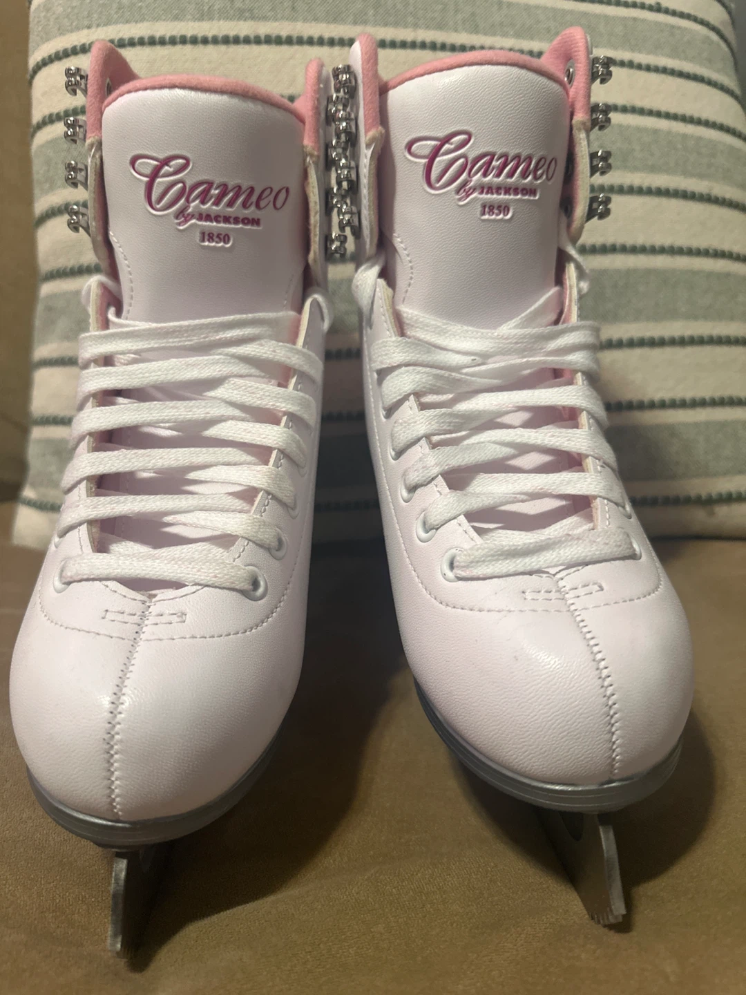 Selling a pair of Jackson Cameo ice skates in size 6 brand new, only used once! They are in really good condition like coming from the store and they are ready for the rink! The blades are Mark I.
