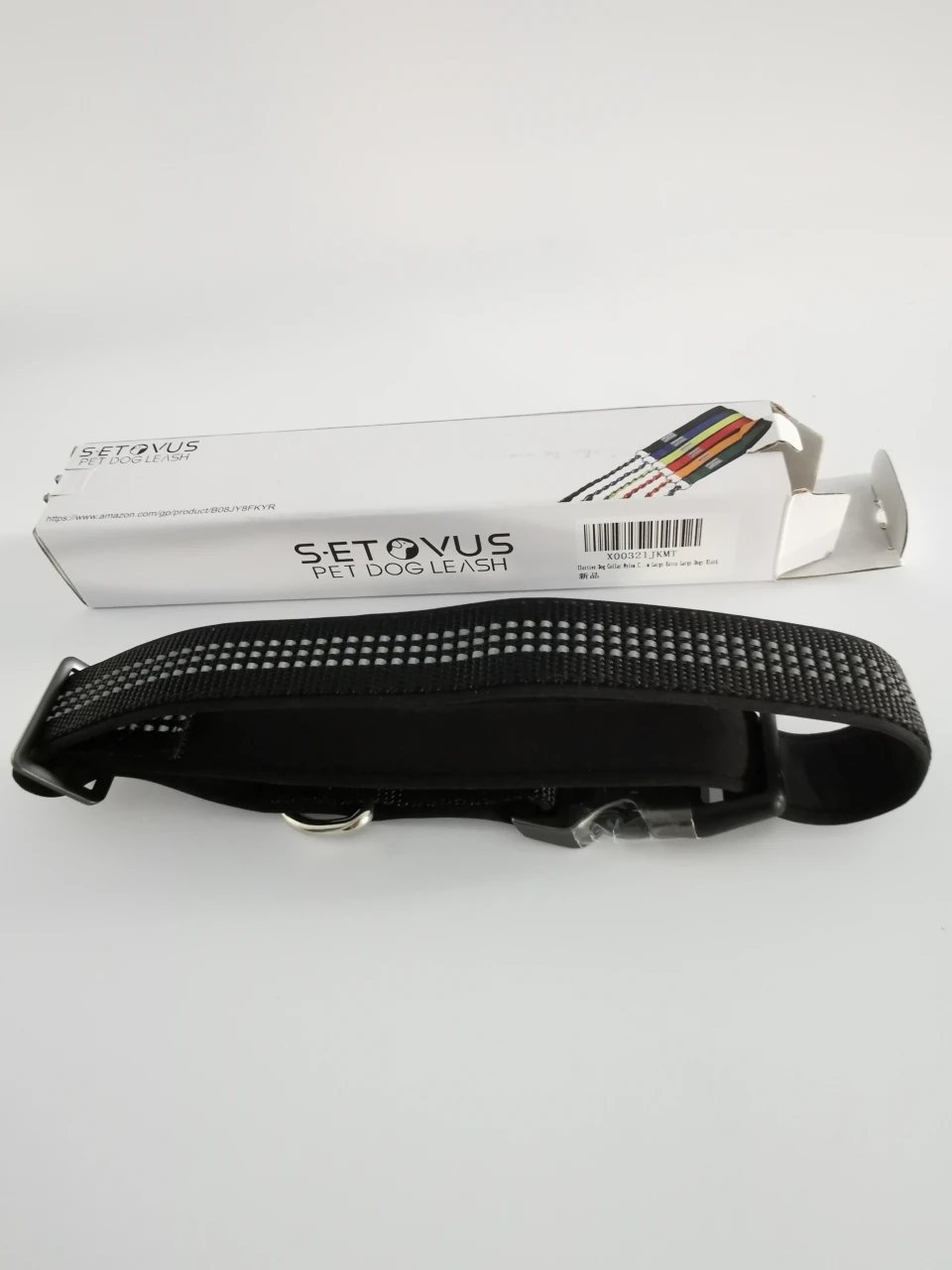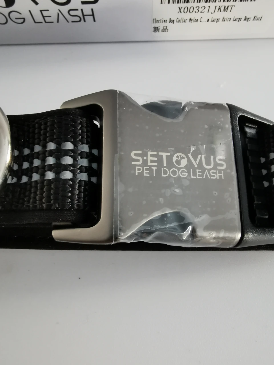 This is a new large, black, S-ETOVUS reflective nylon dog collar, suitable for large dogs and puppies, with a quick release metal buckle and soft neoprene padding. Specifications: * Brand: S-ETOVUS * Material: Nylon, Neoprene, Metal * Colour: Black * Size: Large (16-26 inches) Pickup at Bur Oak @ McCowan Markham everyday and at 70 Queens Wharf Rd, downtown Toronto around noon most of Sundays.