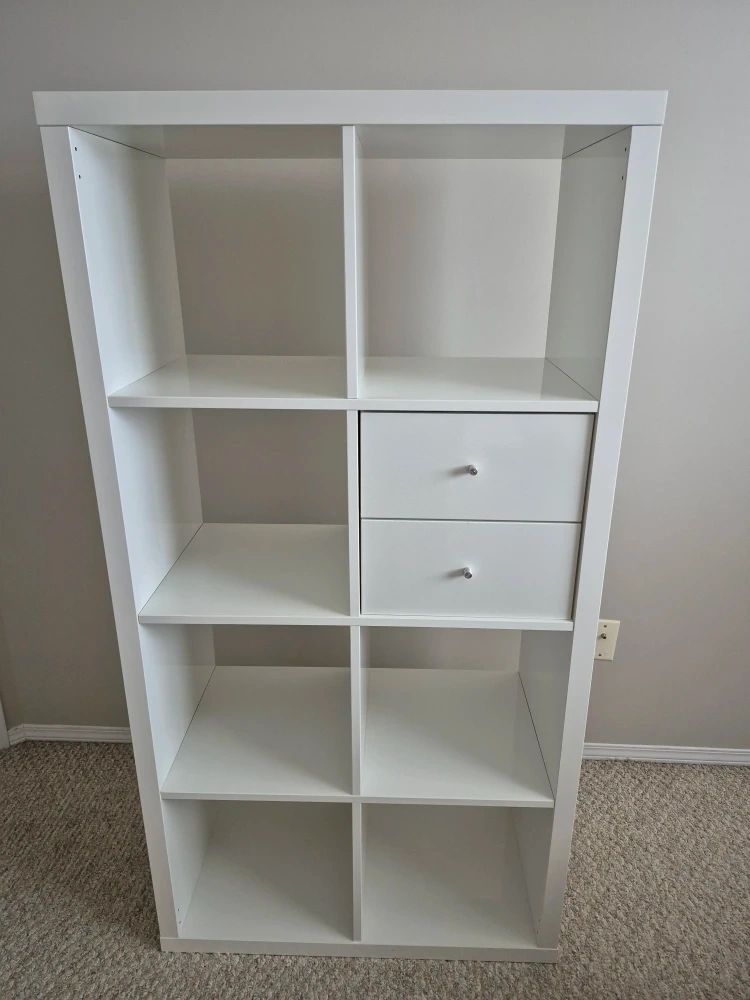 Selling a white IKEA Kallax shelf unit! It's in great shape and ready to organize your space. This unit includes the popular drawer inserts for extra storage. Perfect for any room in your home!