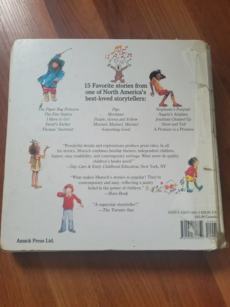 Dive into a world of whimsical stories with this used Munschworks Grand Treasury! This collection features 15 of Robert Munsch's best-loved tales, perfect for bedtime stories and giggles galore. Though it has been previously loved, this book is ready for a new home and new adventures.