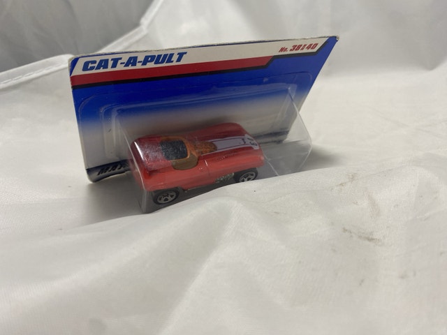 This collectible Hot Wheels 1998 First Editions #38 of 40, Cat-A-Pult, collector number 681, is a vibrant red and still sealed in its original packaging. It's a fantastic find for any Hot Wheels enthusiast!