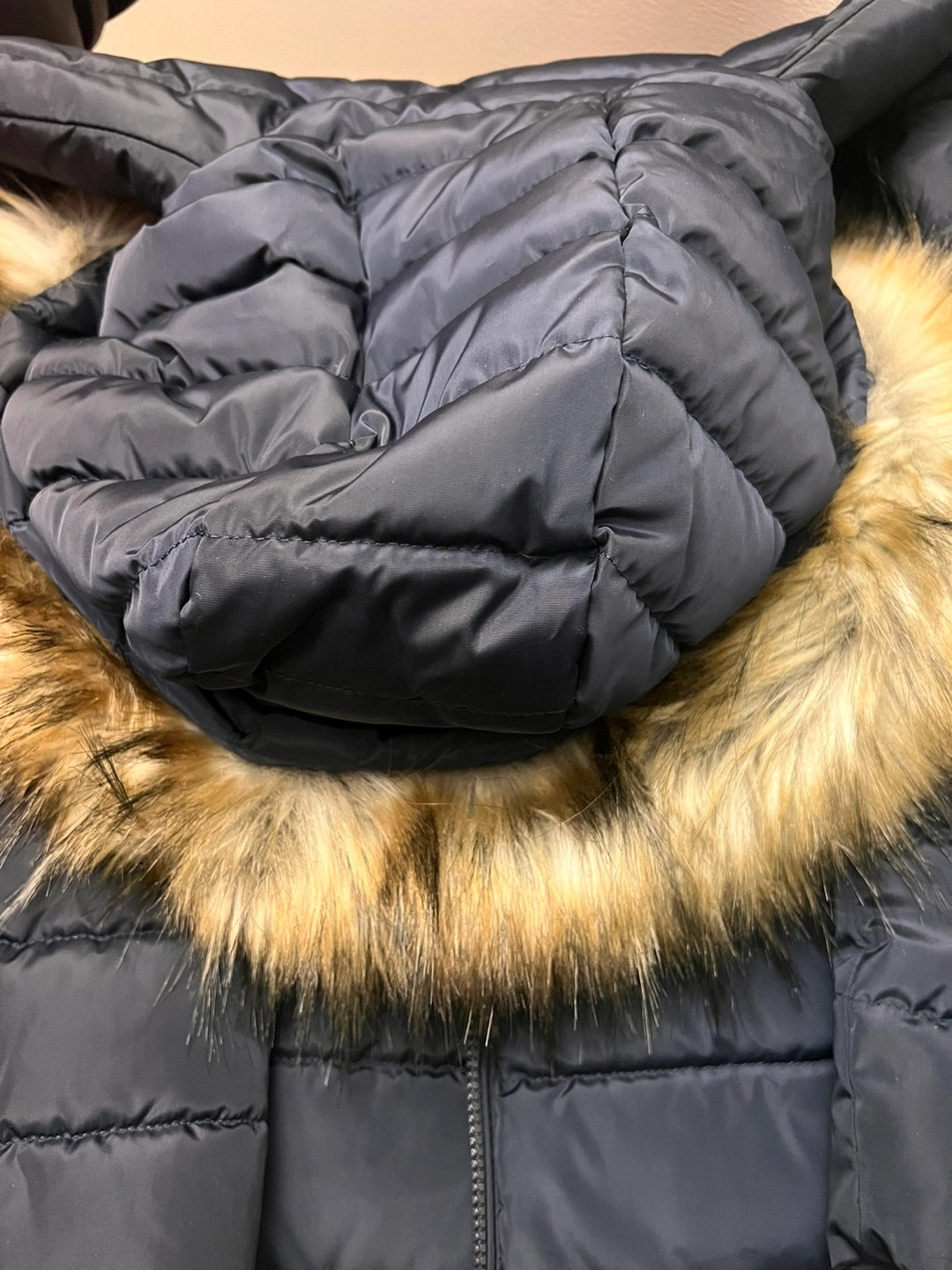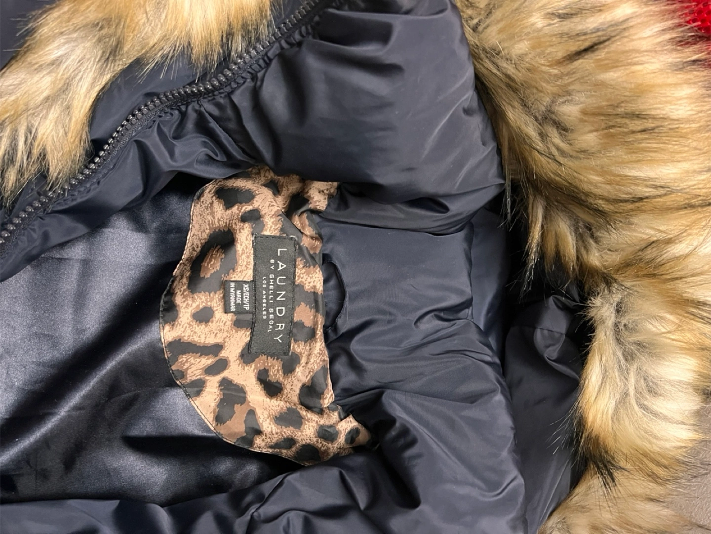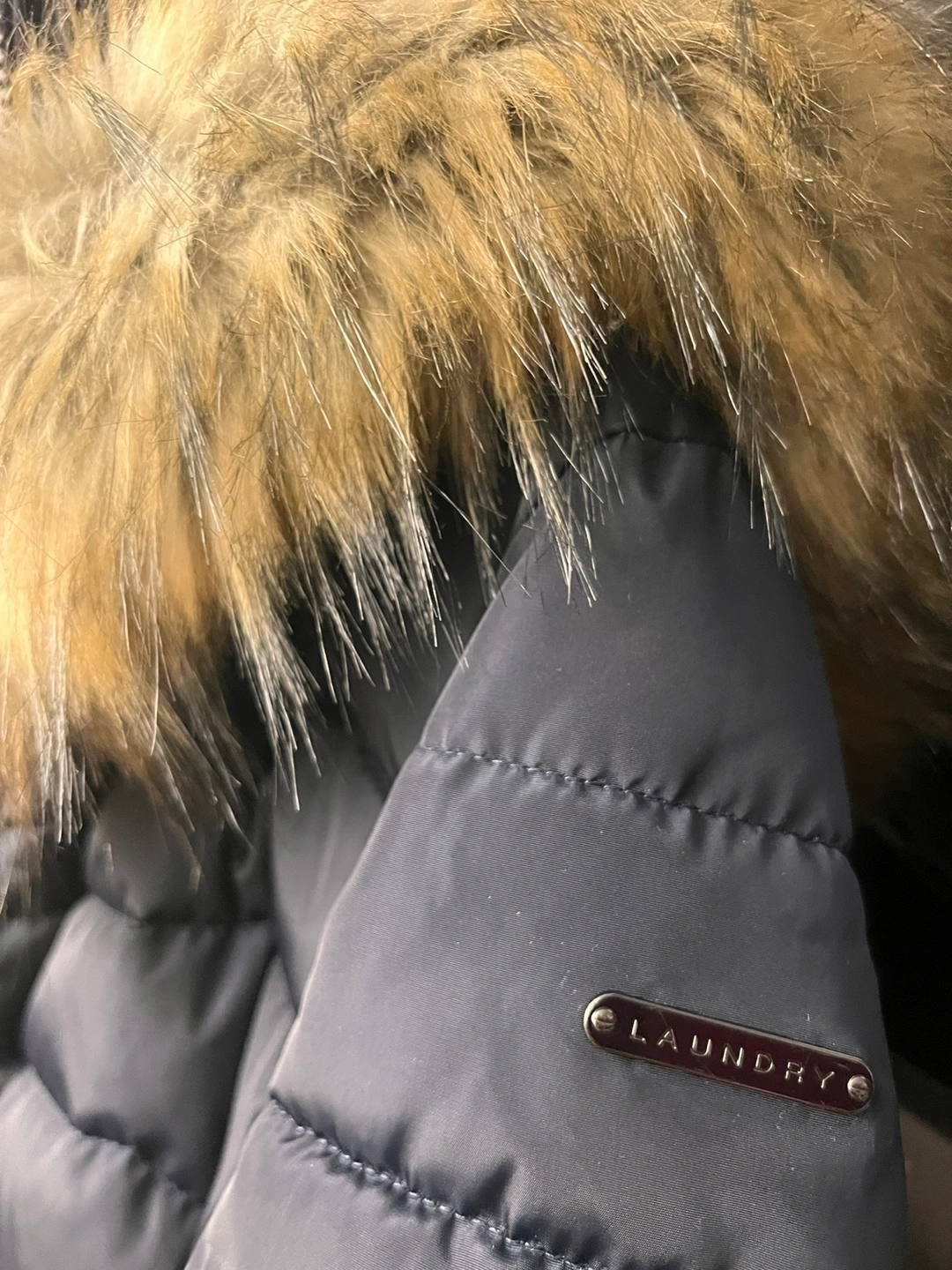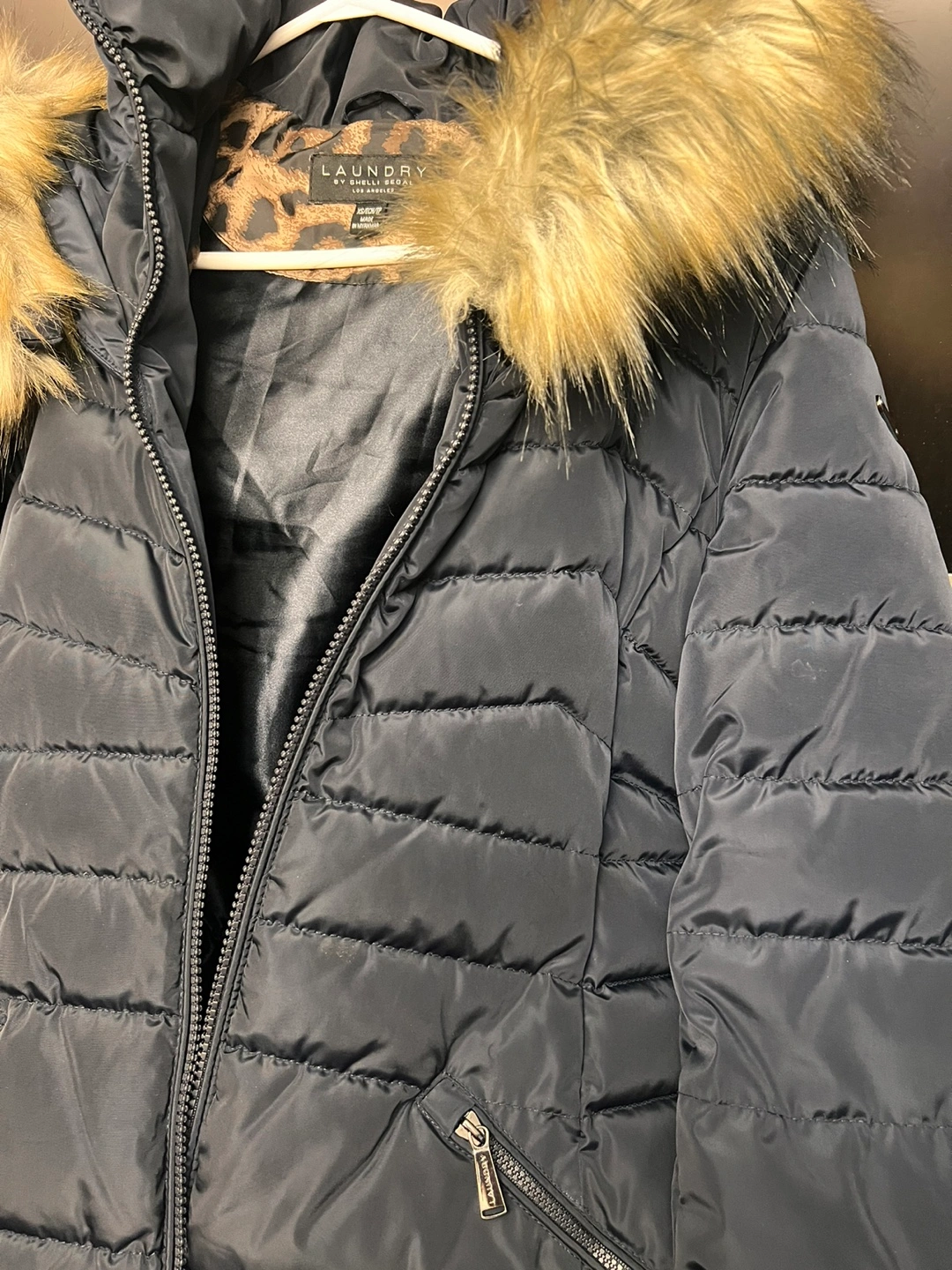 Laundry by Shelli Segal puffer long coat with attached hood and removable faux fur. It's in great condition and ready for the cold weather! Black color, side zippers.