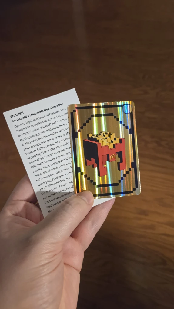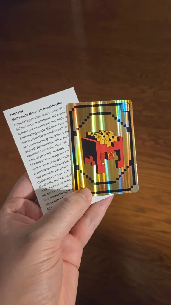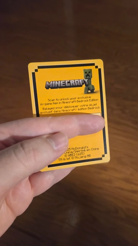 Selling a McDonald's Minecraft Fry Box toy and skin card for the Fry Box item! Scan to unlock your exclusive in-game item in Minecraft: Bedrock Edition
