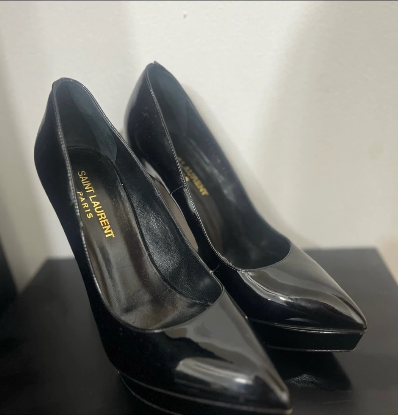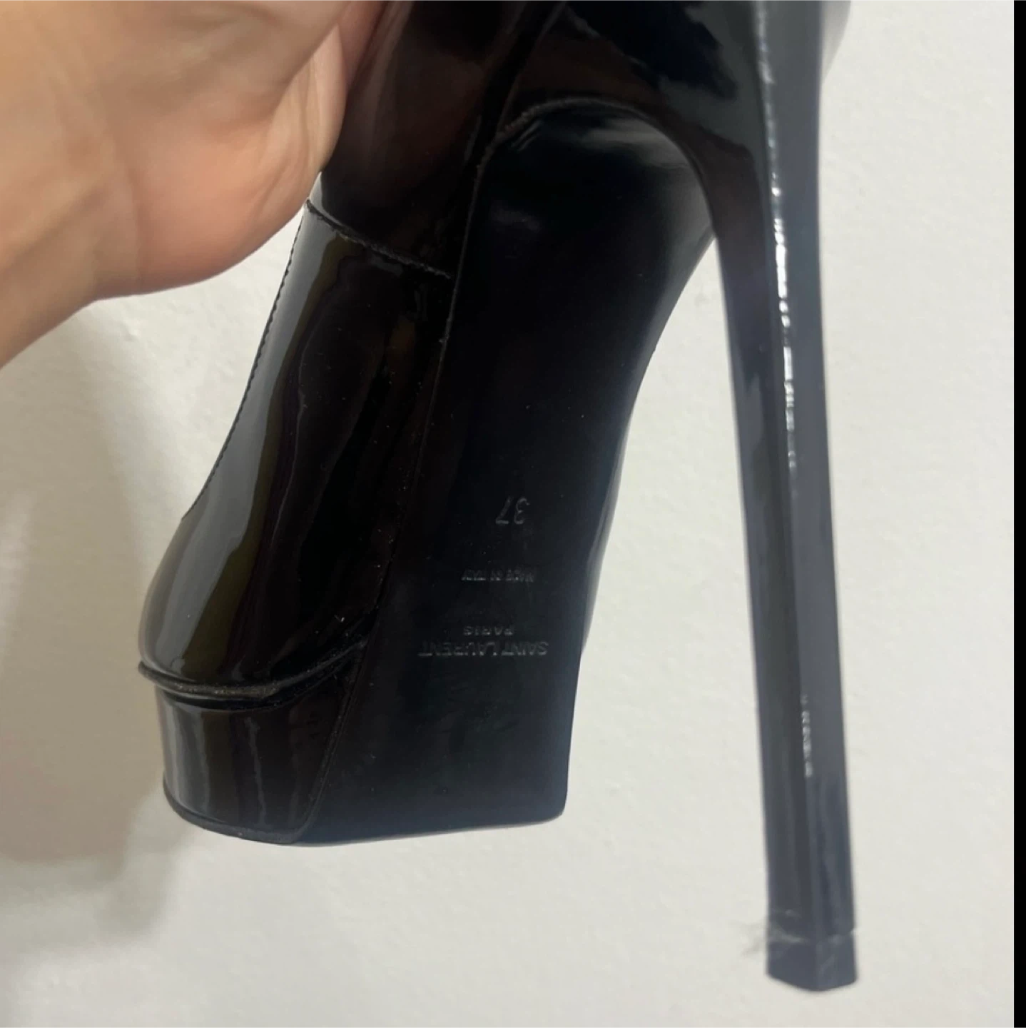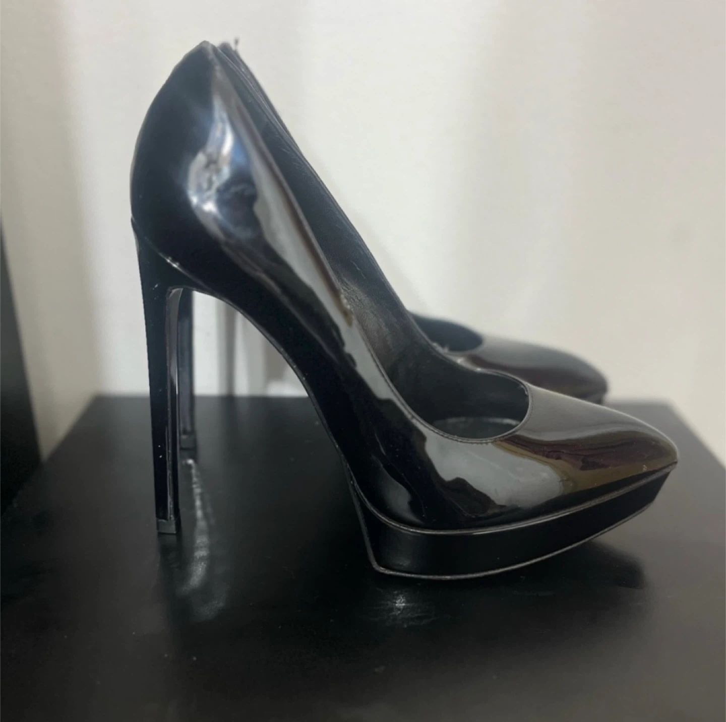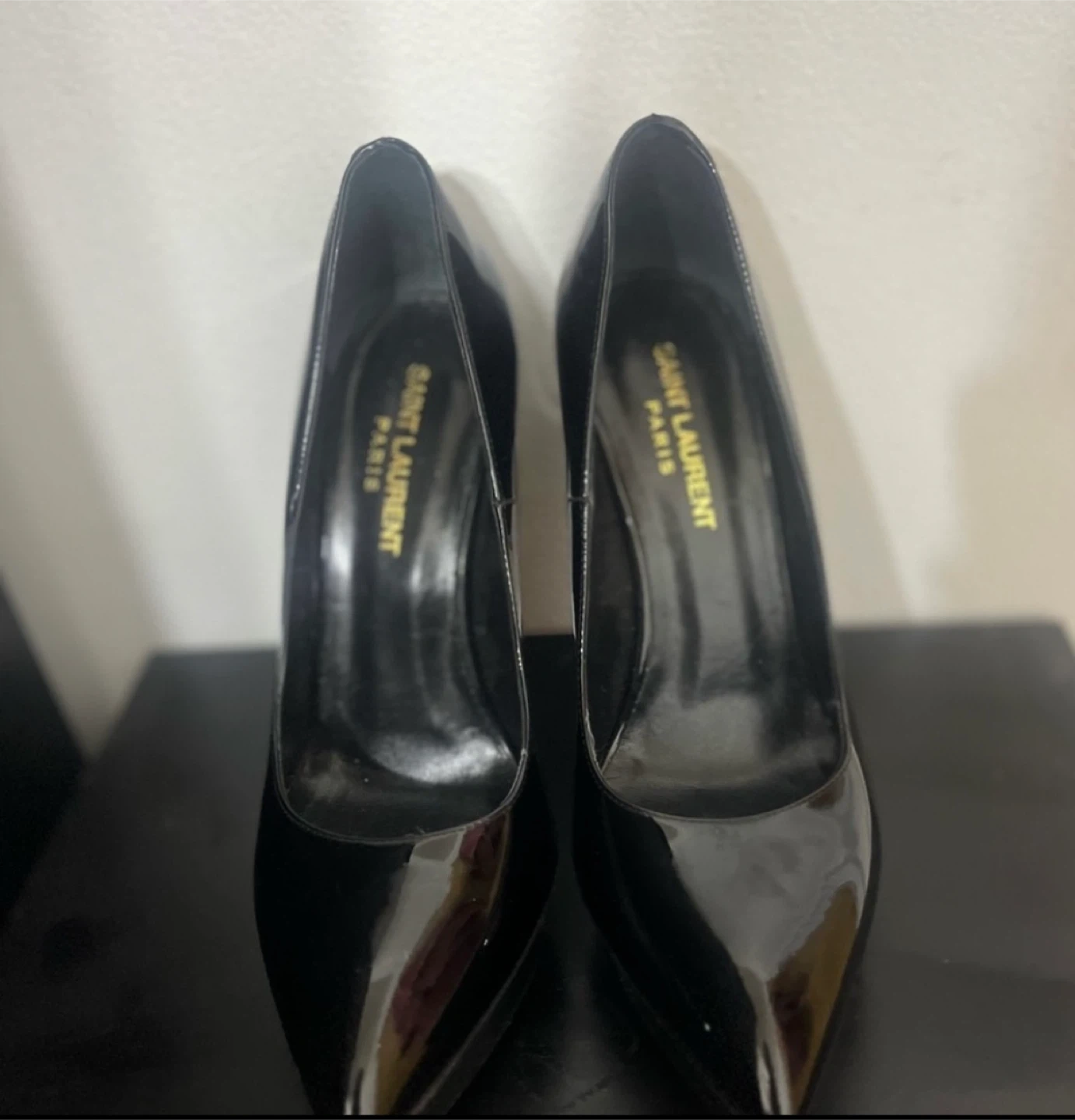 Selling a pair of Saint Laurent heels in black patent leather. They are a size 37. These stylish heels are perfect for a night out!