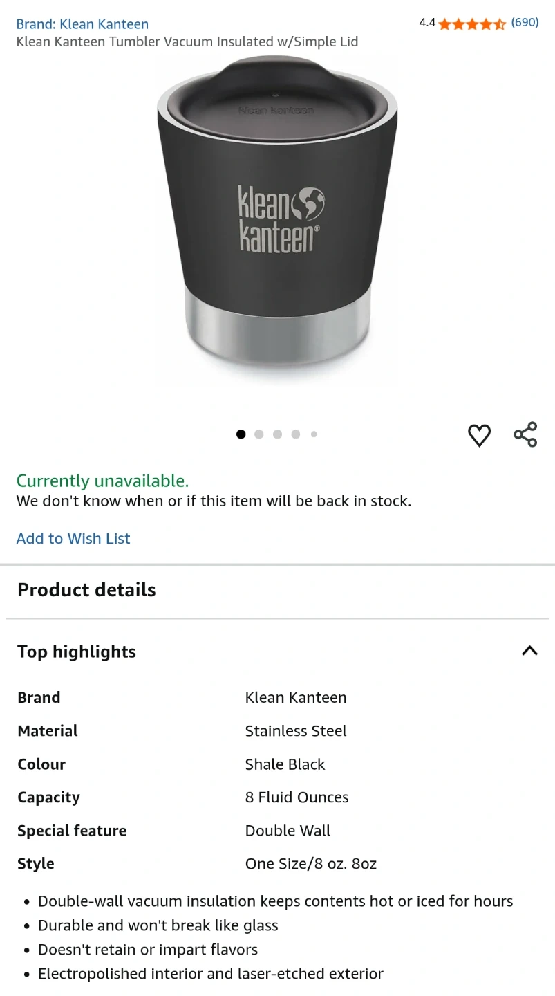 KLEAN KANTEEN Vacuum Insulated tumblers w lids 8oz Shale Black
