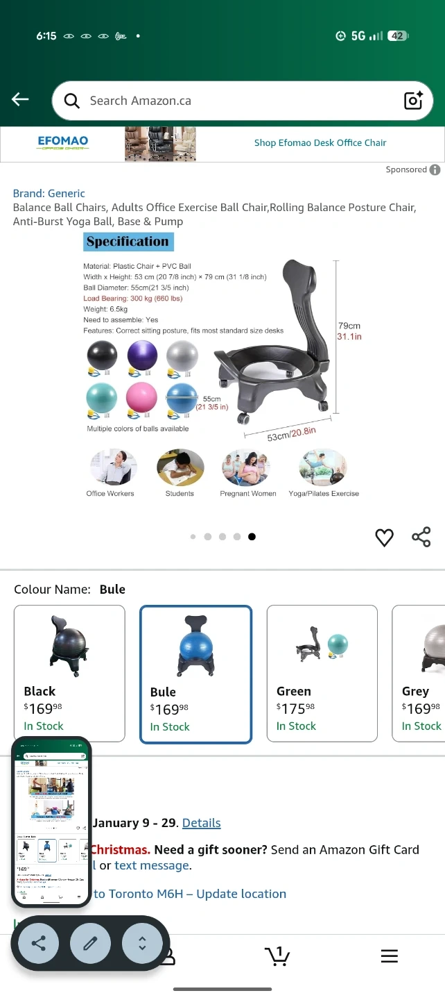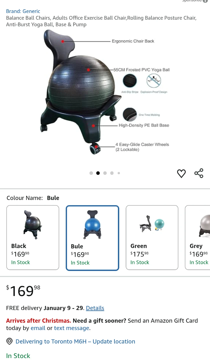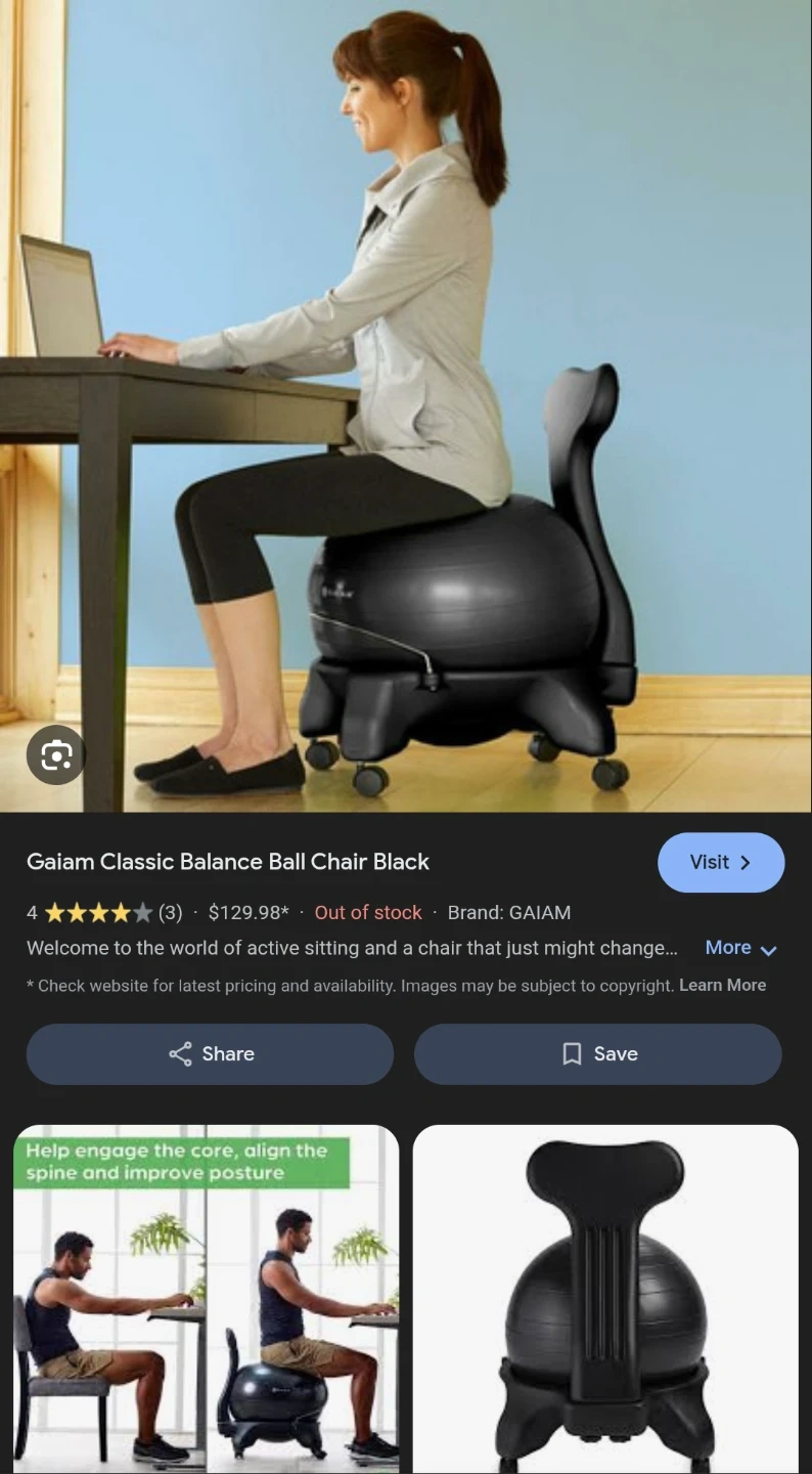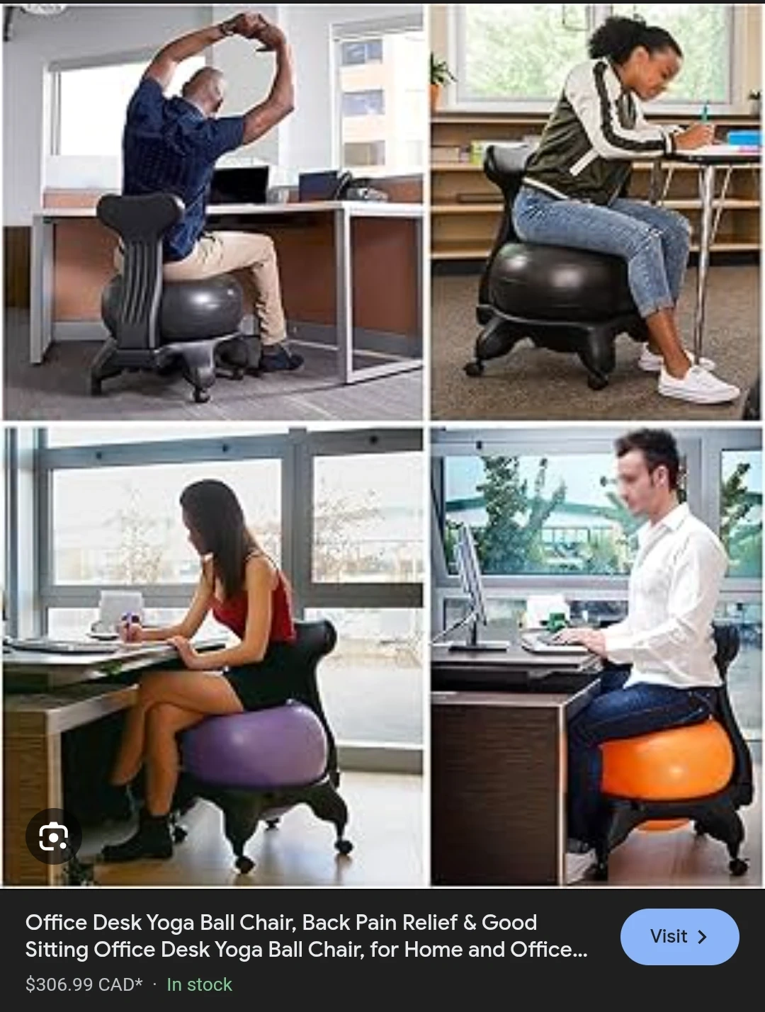 Selling an assembled Gaiam balance ball chair in blue! This is great for improving your posture and core strength while you work from home. The chair includes a balance ball and a base with wheels for easy movement. It's in great condition and ready for a new owner!