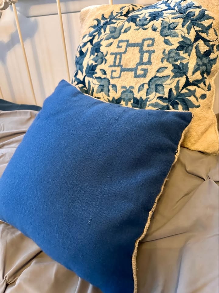 ๐ฟ GORGEOUS Blue & Cream Needlepoint Cushions #cleanout