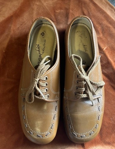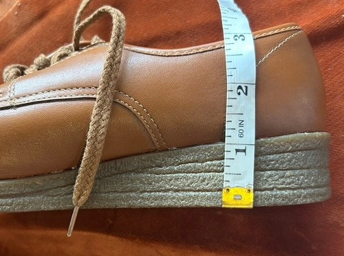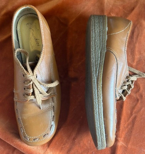 These vintage Oomphies look like they could be brand new! Fits a size women’s US 7 perfectly, could fit 6.5 with a thicker sock too! Slight wedge sole, lace up, insole is cushioned for arch support and comfort :) Made in Canada See photos for specific measurements